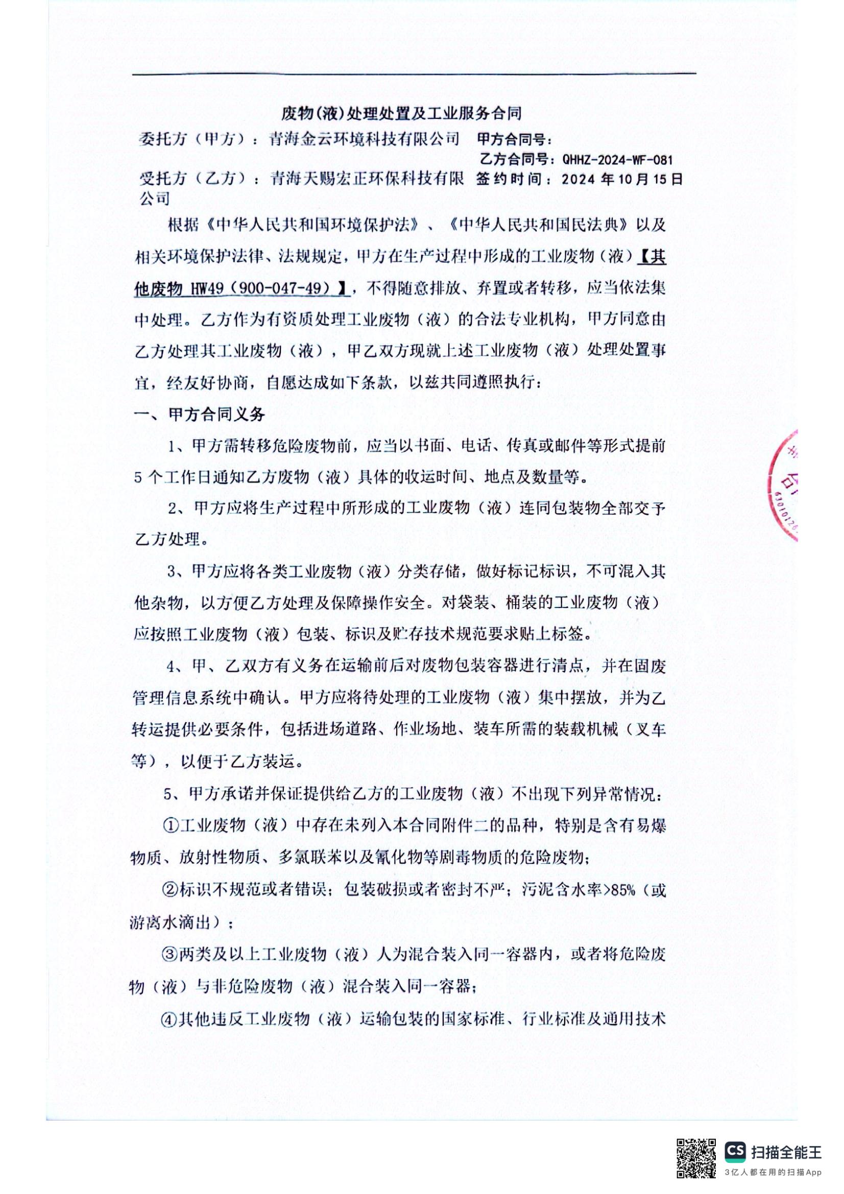 危廢處置合同發(fā)布日期:(2025/1/2) 點擊次數(shù):1672 |