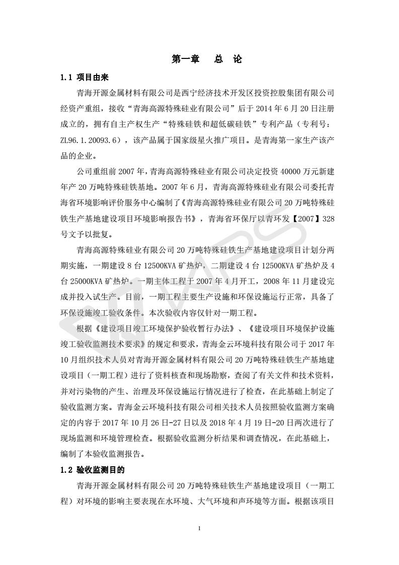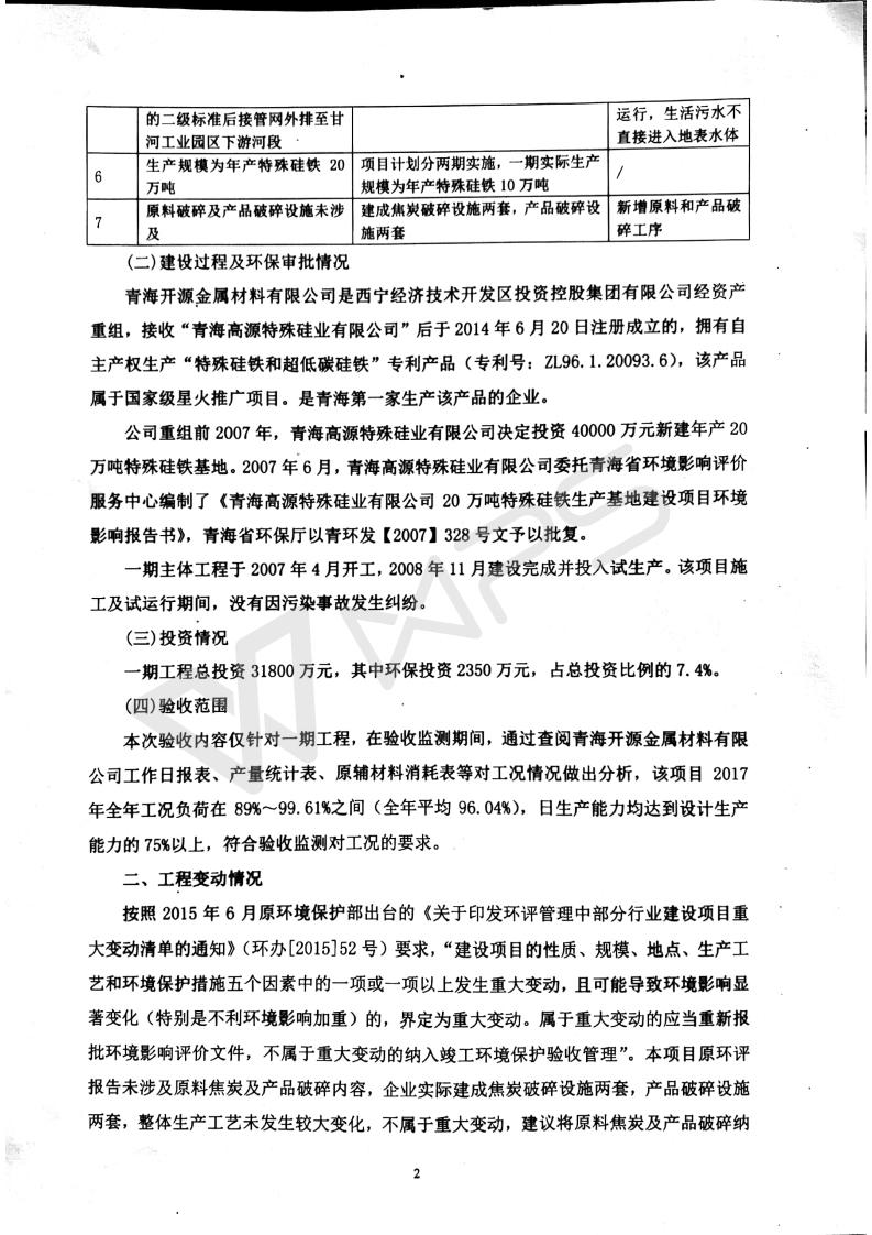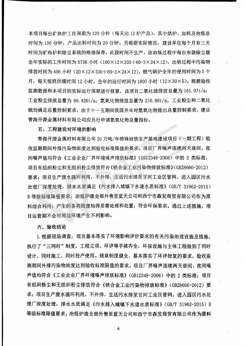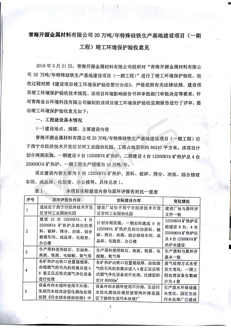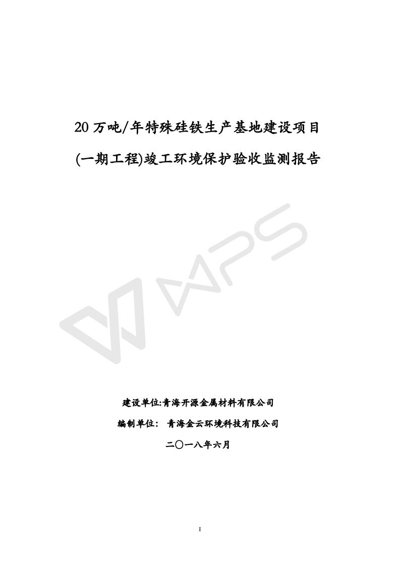 青海開(kāi)源金屬材料有限公司20萬(wàn)噸特殊硅鐵生產(chǎn)基地建設(shè)項(xiàng)目(一期工程)竣工環(huán)境保護(hù)驗(yàn)收?qǐng)?bào)告書會(huì)后修改20180521
