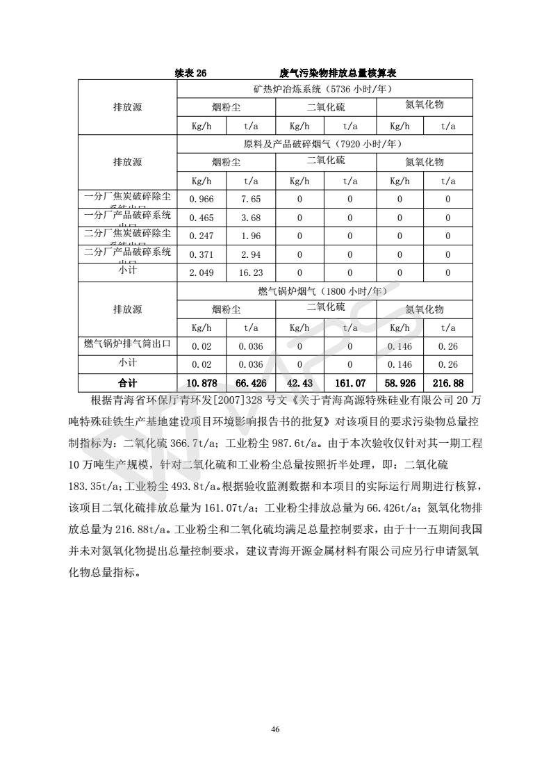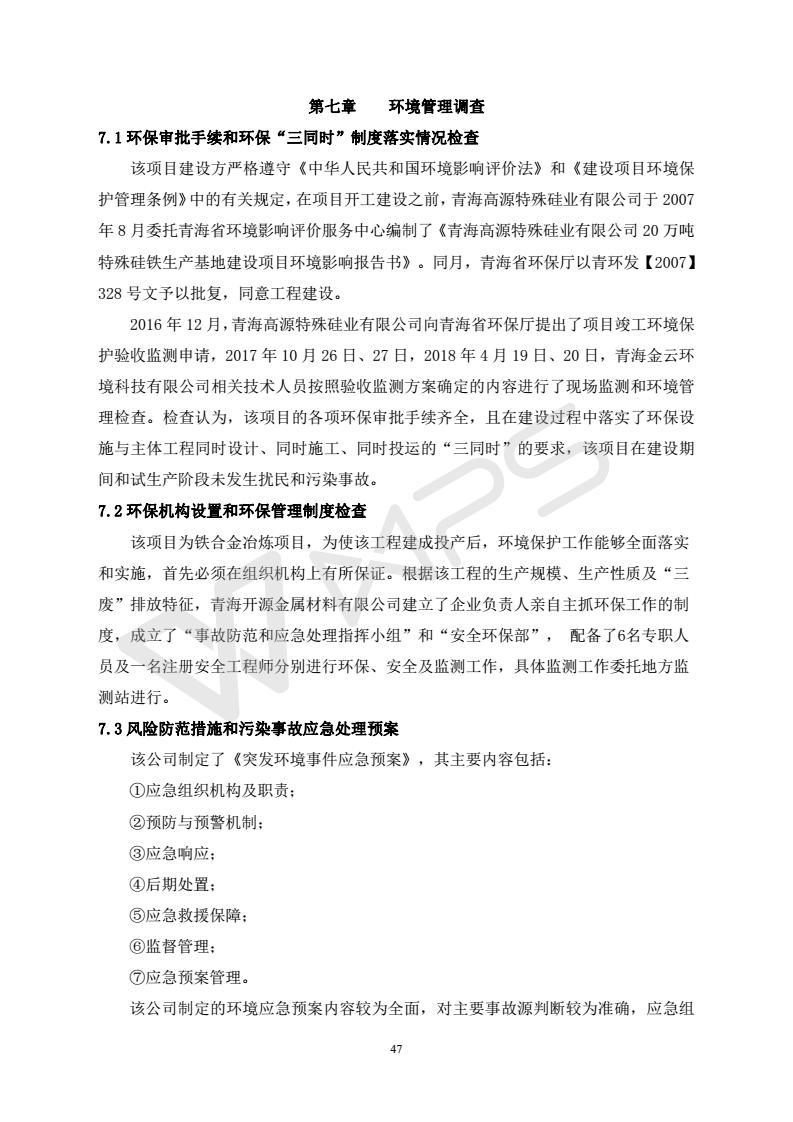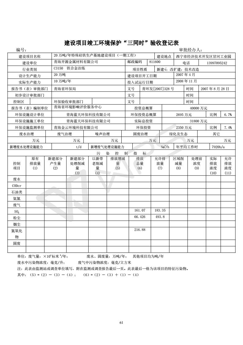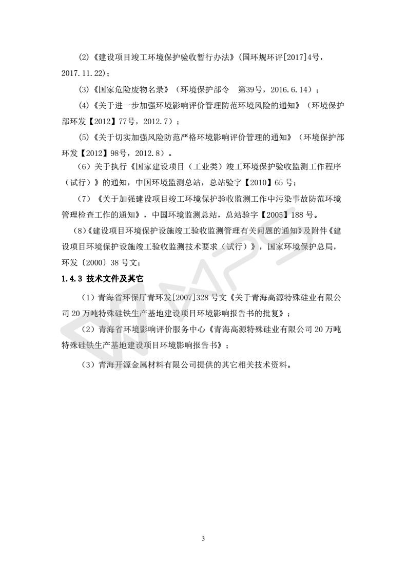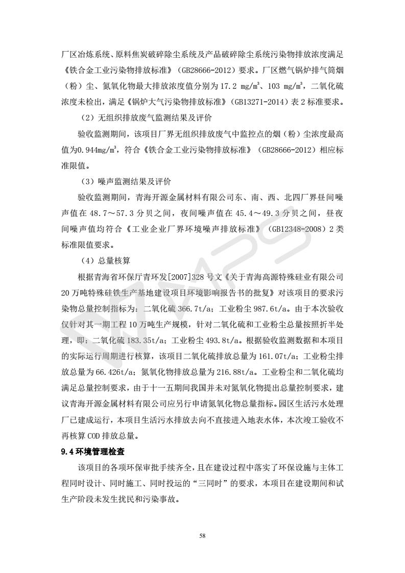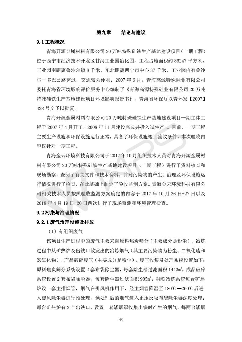 青海開(kāi)源金屬材料有限公司20萬(wàn)噸特殊硅鐵生產(chǎn)基地建設(shè)項(xiàng)目(一期工程)竣工環(huán)境保護(hù)驗(yàn)收?qǐng)?bào)告書會(huì)后修改20180521