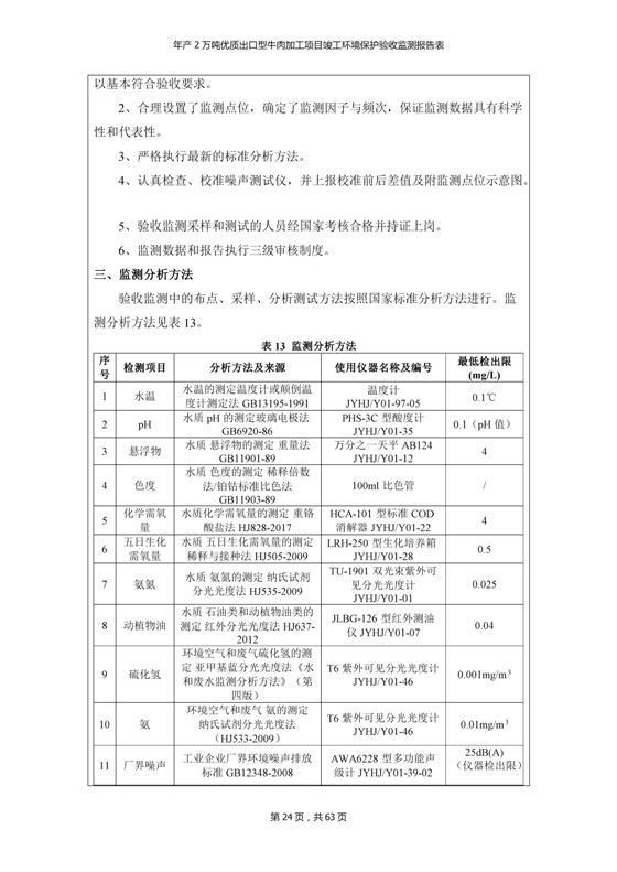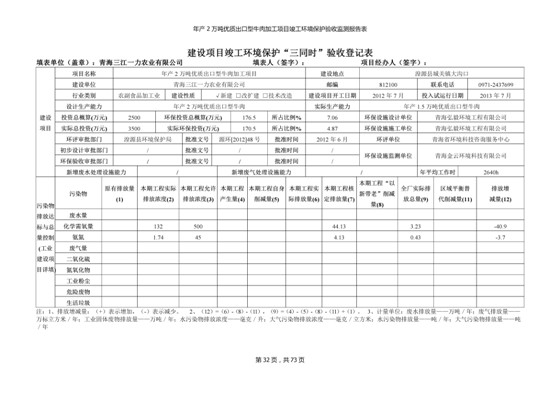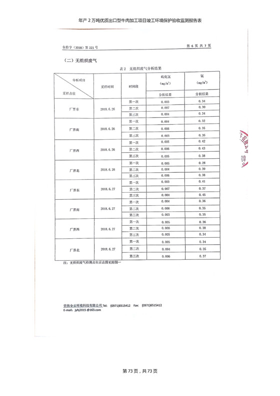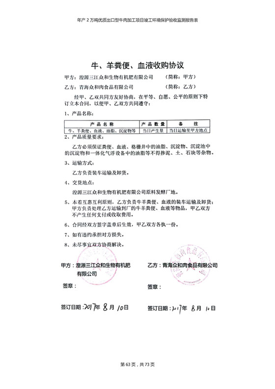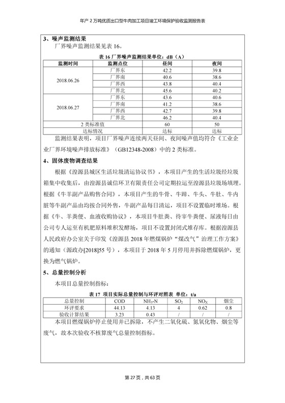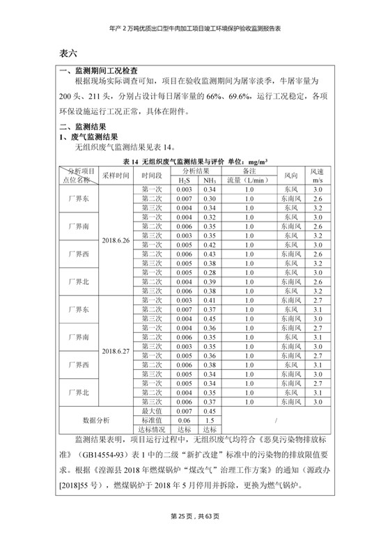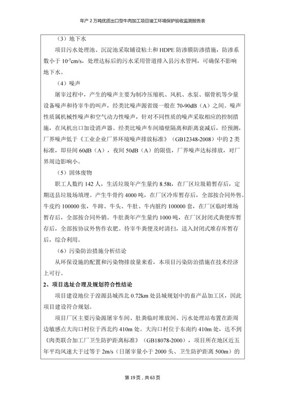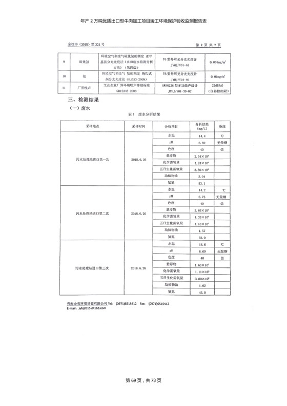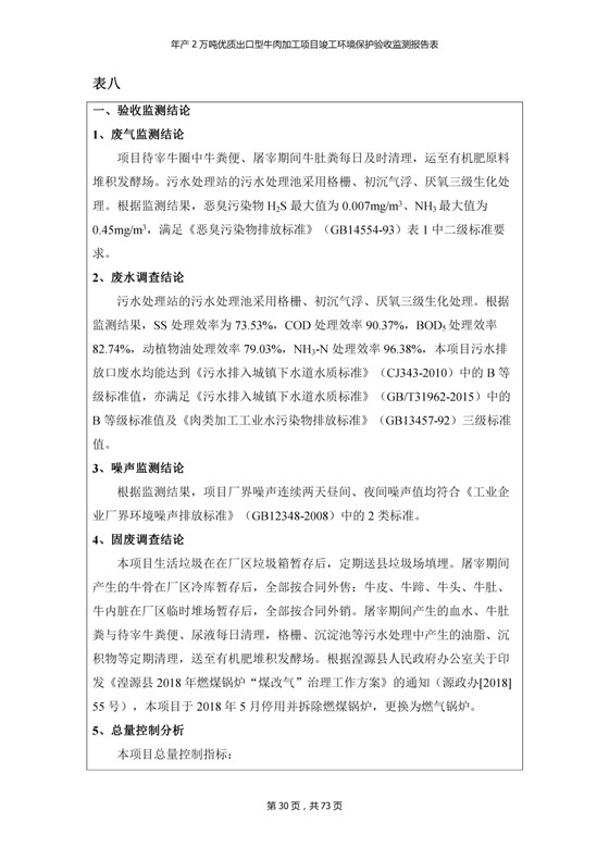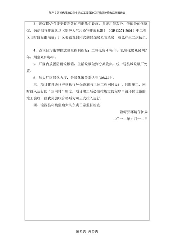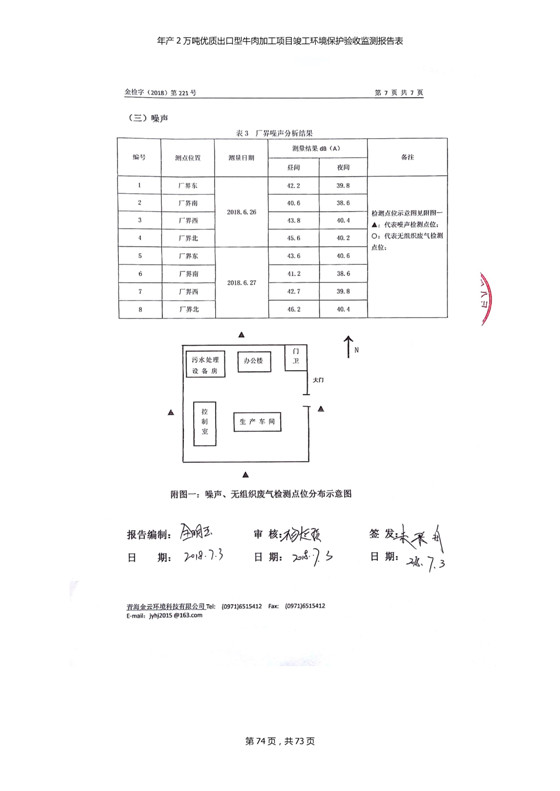 根據(jù)中華人民共和國國務(wù)院令第253號《建設(shè)項目環(huán)境保護管理條例》(中華人民共和國國務(wù)院令第682號《國務(wù)院關(guān)于修改〈建設(shè)項目環(huán)境保護管理條例〉的決定》和《建設(shè)項目竣工環(huán)境保護驗收暫行辦法》,嚴(yán)格依照有關(guān)法律法規(guī),建設(shè)項目環(huán)境保護設(shè)施驗收技術(shù)規(guī)范,本項目環(huán)評報告表和環(huán)保審批部門審批意見以及企業(yè)自行驗收相關(guān)要求等對本項目進行驗收,本項目符合環(huán)保驗收條件,可以通過環(huán)保驗收。 青海三江一力農(nóng)業(yè)有限公司組織召開年產(chǎn)2萬噸優(yōu)質(zhì)出口型牛肉加工項目(一期工程)驗收組意見.