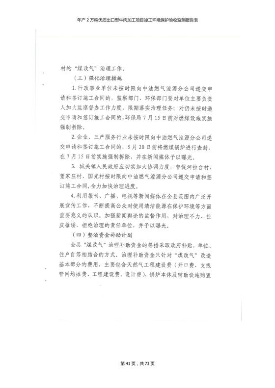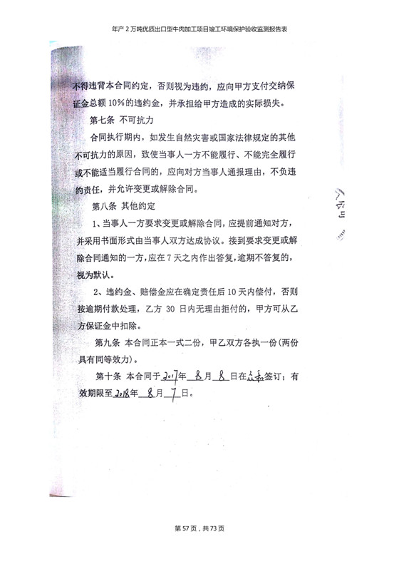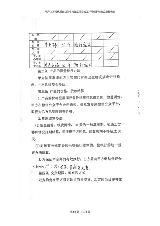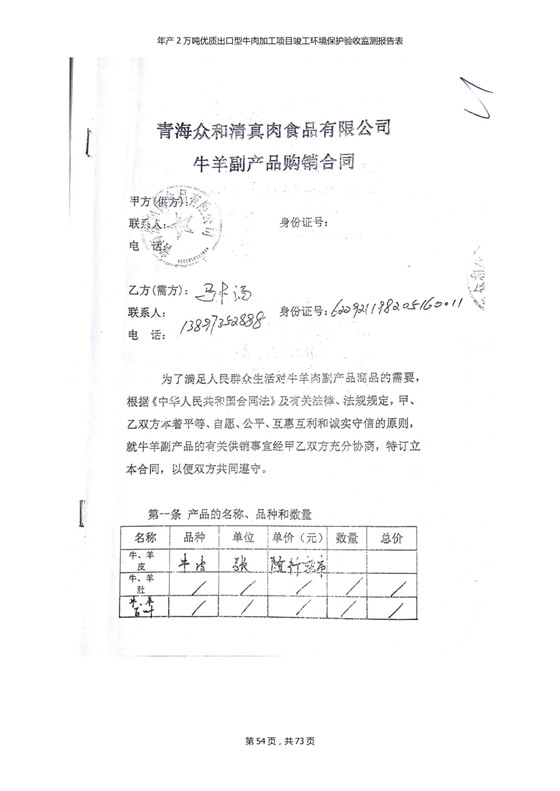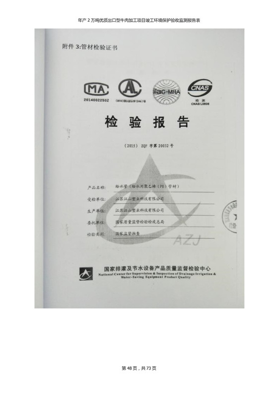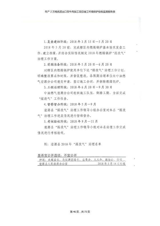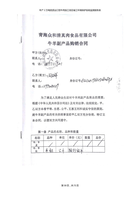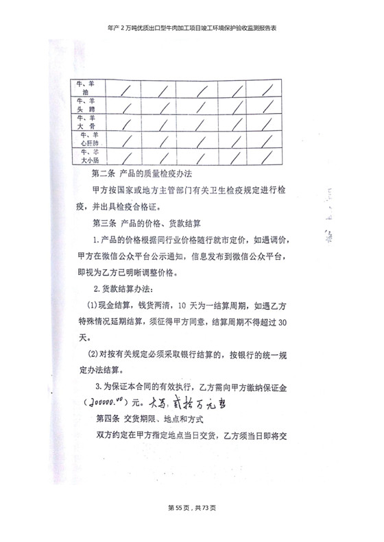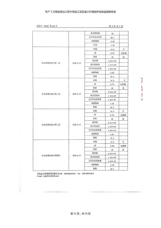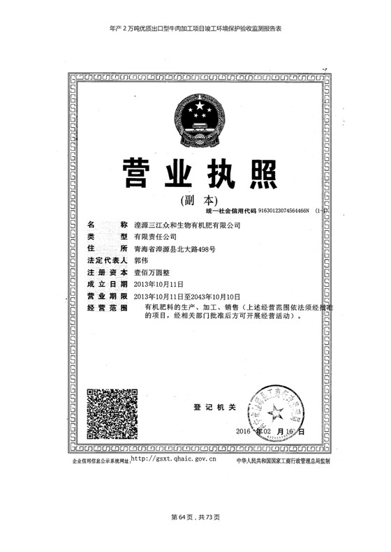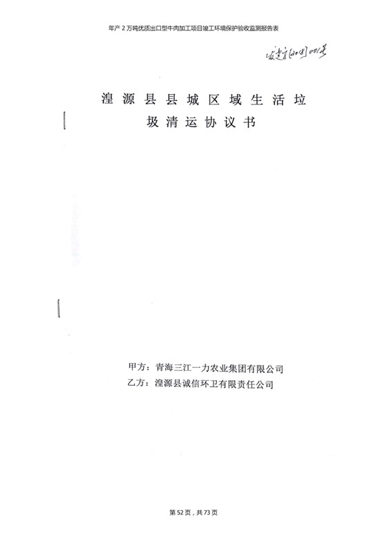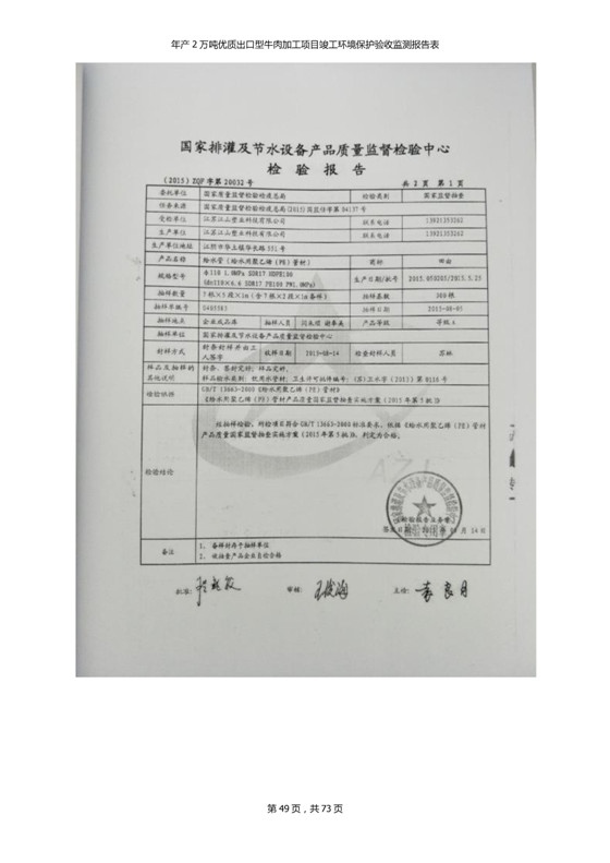 根據(jù)中華人民共和國國務(wù)院令第253號《建設(shè)項目環(huán)境保護管理條例》(中華人民共和國國務(wù)院令第682號《國務(wù)院關(guān)于修改〈建設(shè)項目環(huán)境保護管理條例〉的決定》和《建設(shè)項目竣工環(huán)境保護驗收暫行辦法》,嚴(yán)格依照有關(guān)法律法規(guī),建設(shè)項目環(huán)境保護設(shè)施驗收技術(shù)規(guī)范,本項目環(huán)評報告表和環(huán)保審批部門審批意見以及企業(yè)自行驗收相關(guān)要求等對本項目進行驗收,本項目符合環(huán)保驗收條件,可以通過環(huán)保驗收。 青海三江一力農(nóng)業(yè)有限公司組織召開年產(chǎn)2萬噸優(yōu)質(zhì)出口型牛肉加工項目(一期工程)驗收組意見.