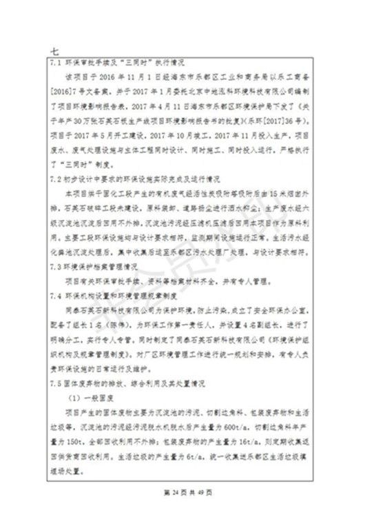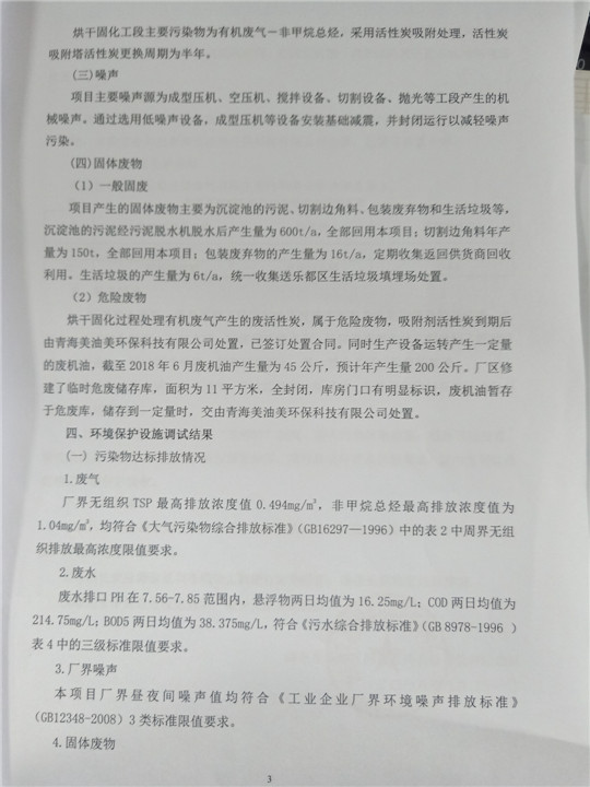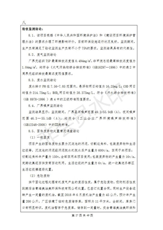 根據(jù)中華人民共和國(guó)國(guó)務(wù)院令第253號(hào)《建設(shè)項(xiàng)目環(huán)境保護(hù)管理?xiàng)l例》(中華人民共和國(guó)國(guó)務(wù)院令第682號(hào)《國(guó)務(wù)院關(guān)于修改〈建設(shè)項(xiàng)目環(huán)境保護(hù)管理?xiàng)l例〉的決定》和《建設(shè)項(xiàng)目竣工環(huán)境保護(hù)驗(yàn)收暫行辦法》,嚴(yán)格依照有關(guān)法律法規(guī),建設(shè)項(xiàng)目環(huán)境保護(hù)設(shè)施驗(yàn)收技術(shù)規(guī)范,本項(xiàng)目環(huán)評(píng)報(bào)告表和環(huán)保審批部門審批意見以及企業(yè)自行驗(yàn)收相關(guān)要求等對(duì)本項(xiàng)目進(jìn)行驗(yàn)收,本項(xiàng)目符合環(huán)保驗(yàn)收條件,可以通過環(huán)保驗(yàn)收。 海東市樂都區(qū)同泰科技有限公司竣工環(huán)境保護(hù)驗(yàn)收監(jiān)測(cè)報(bào)告公示