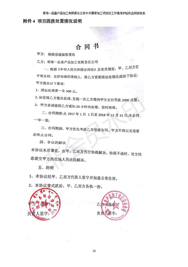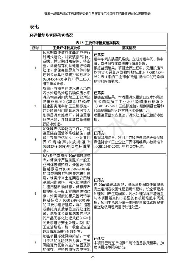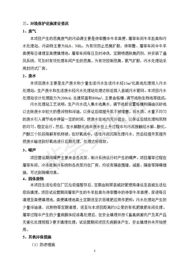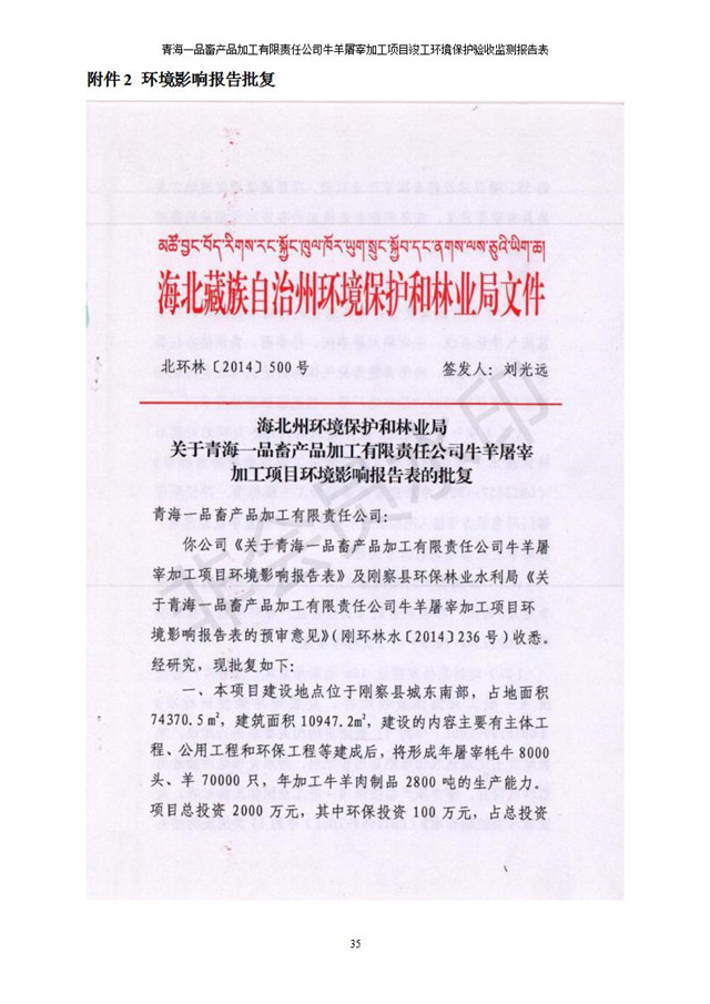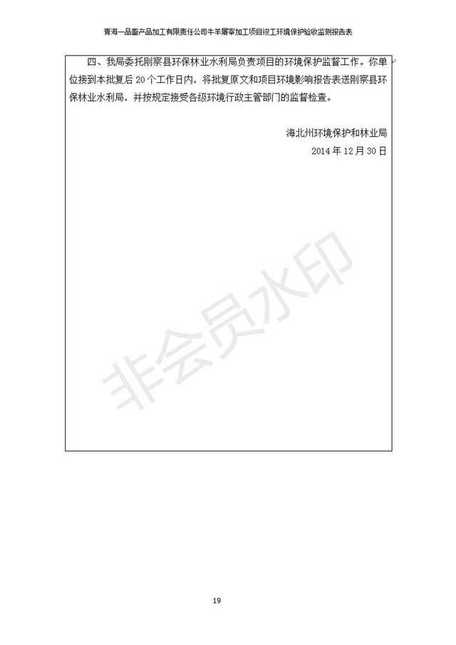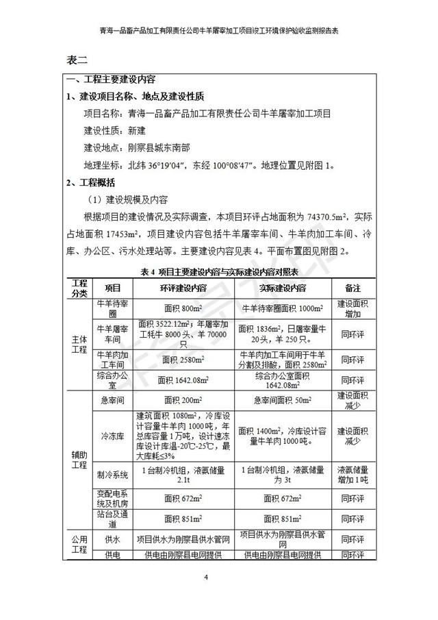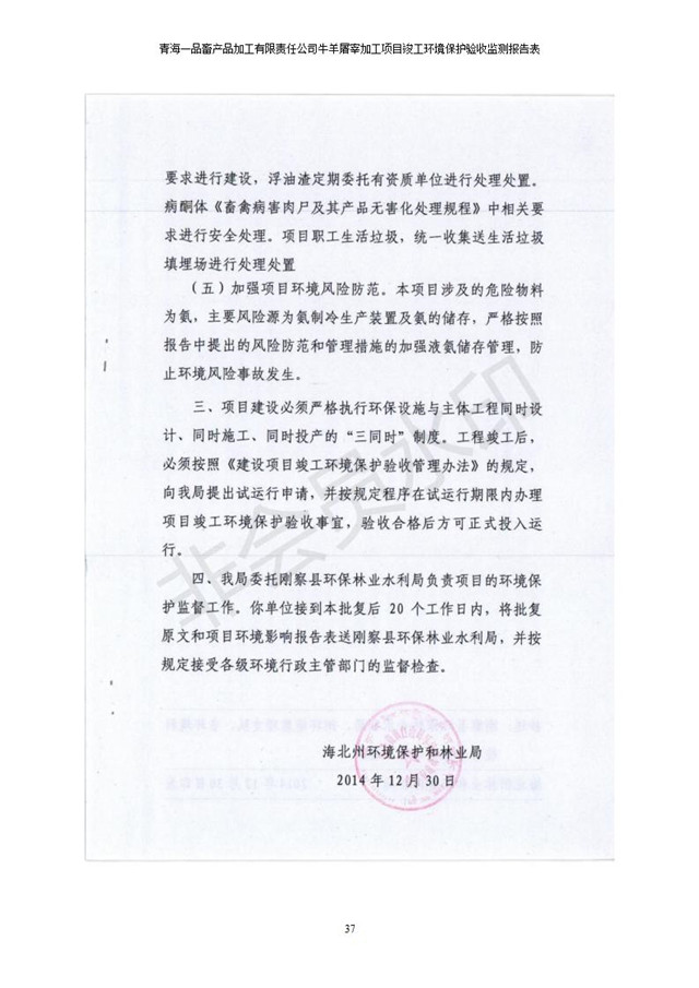 根據(jù)中華人民共和國(guó)國(guó)務(wù)院令第682號(hào)《國(guó)務(wù)院關(guān)于修改〈建設(shè)項(xiàng)目環(huán)境保護(hù)管理?xiàng)l例〉的決定》和《建設(shè)項(xiàng)目竣工環(huán)境保護(hù)驗(yàn)收暫行辦法》(國(guó)務(wù)院令682號(hào)),青海一品畜產(chǎn)品加工有限責(zé)任公司牛羊屠宰加工項(xiàng)目(包括竣工環(huán)境保護(hù)驗(yàn)收監(jiān)測(cè)報(bào)告表和驗(yàn)收意見)公示如下。 一、項(xiàng)目名稱:青海一品畜產(chǎn)品加工有限責(zé)任公司牛羊屠宰加工項(xiàng)目竣工環(huán)境保護(hù)驗(yàn)收監(jiān)測(cè)報(bào)告表 二、地點(diǎn):剛察縣縣城東大街加油站東側(cè) 三、建設(shè)單位:青海一品畜產(chǎn)品加工有限責(zé)任公司 四、建設(shè)內(nèi)容:項(xiàng)目地面積17453m2,項(xiàng)目建設(shè)內(nèi)容包括牛羊屠宰車間、牛羊肉加工車間、冷庫(kù)、辦公區(qū)、污水處理站等。 五、聯(lián)系人:張工 七、公示時(shí)間:二〇一九年一月十一日至二〇一九年二月七日 公示期間,對(duì)上述公示內(nèi)容如有異議,請(qǐng)以書面形式反饋,個(gè)人須署真實(shí)姓名,單位須加蓋公章。