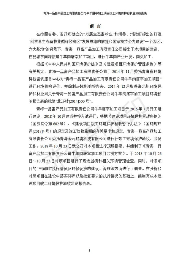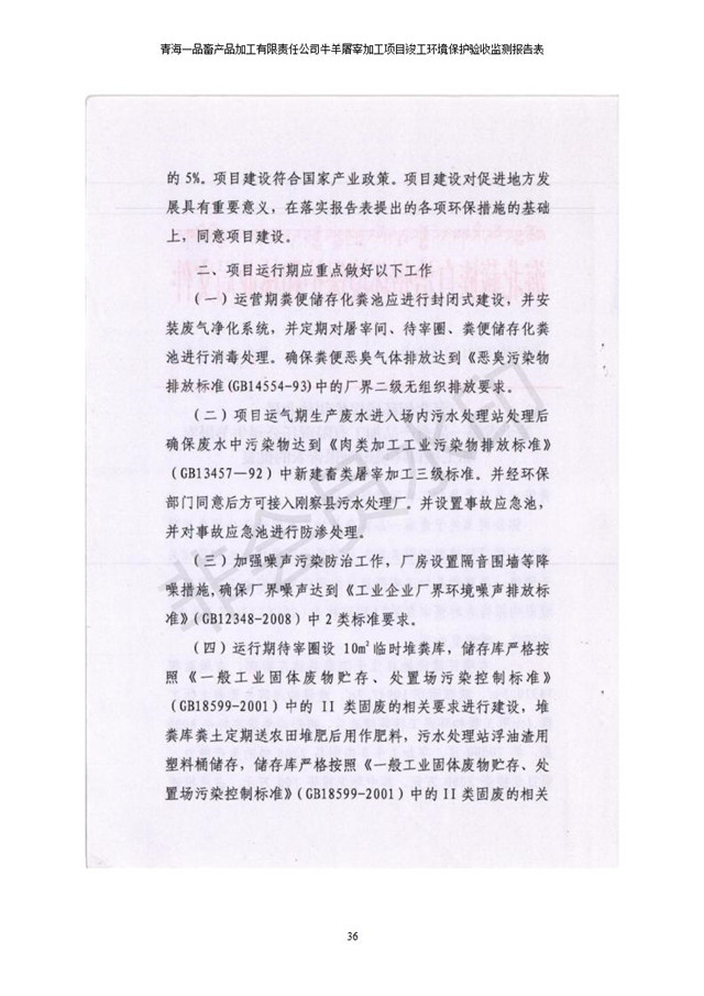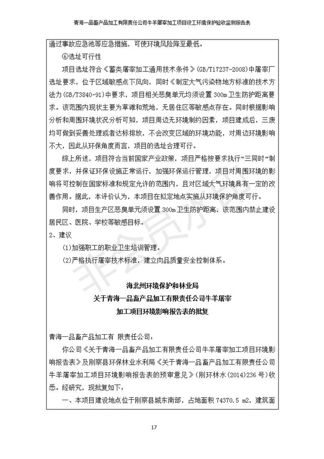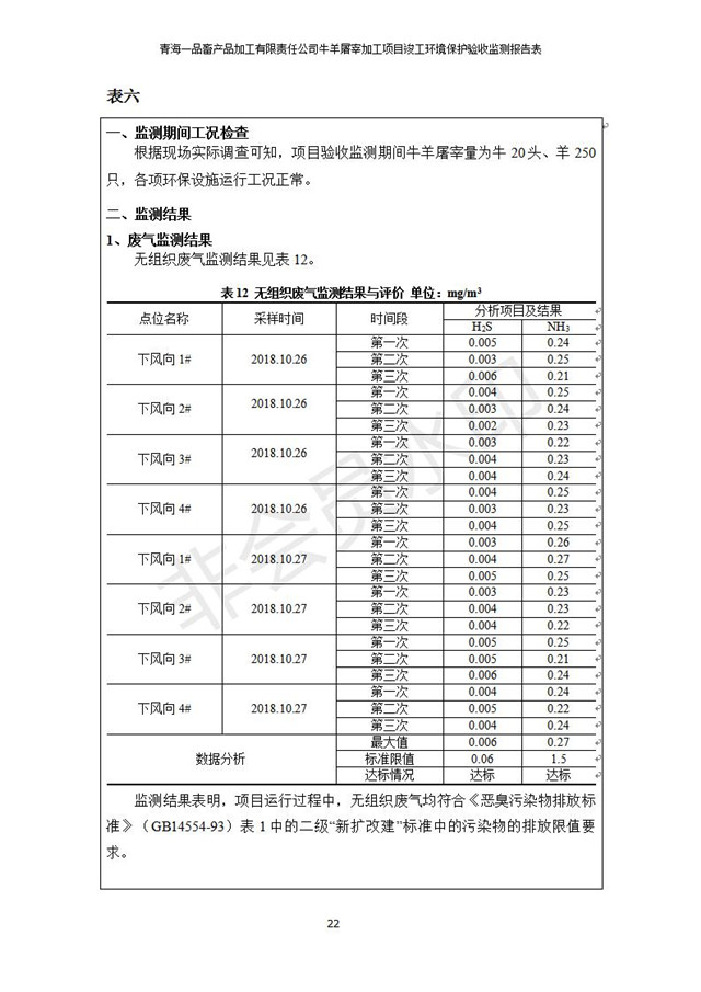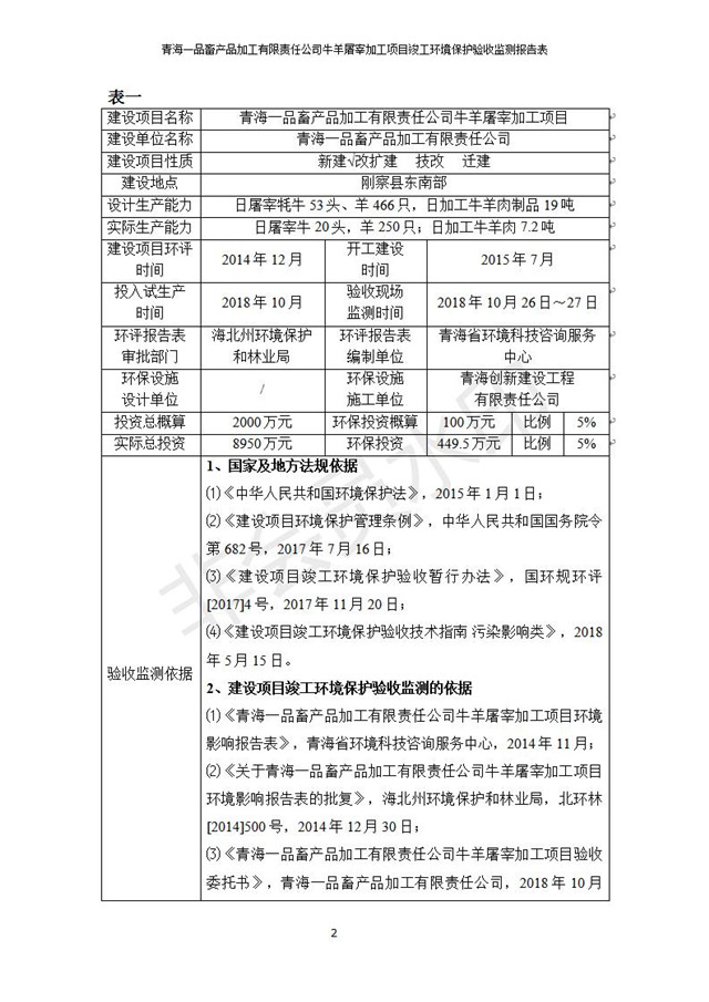 青海一品畜產(chǎn)品加工有限責(zé)任公司牛羊屠宰加工項(xiàng)目 竣工環(huán)境保護(hù)驗(yàn)收監(jiān)測(cè)報(bào)告表公示發(fā)布日期:(2019-1-11) 點(diǎn)擊次數(shù):3234 |
