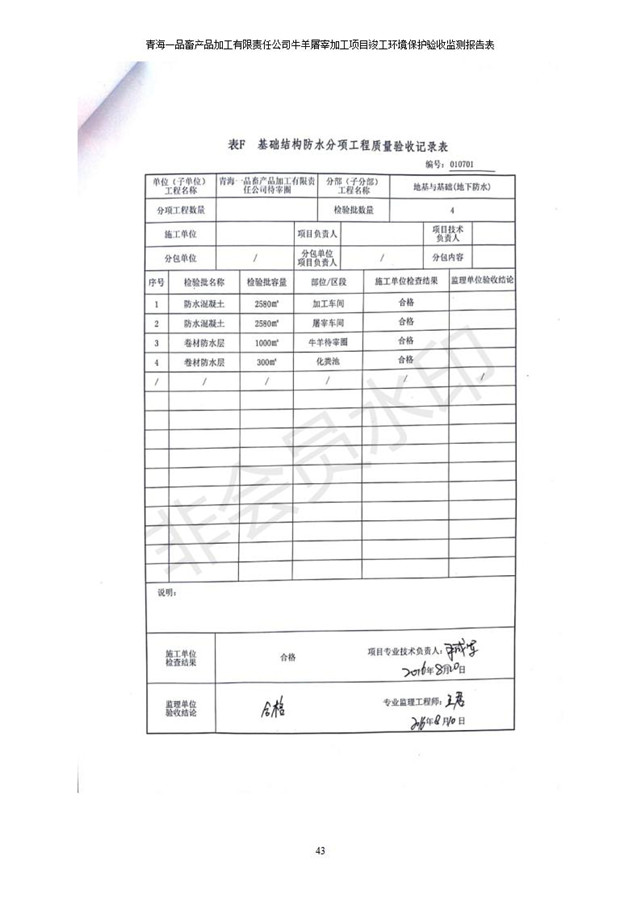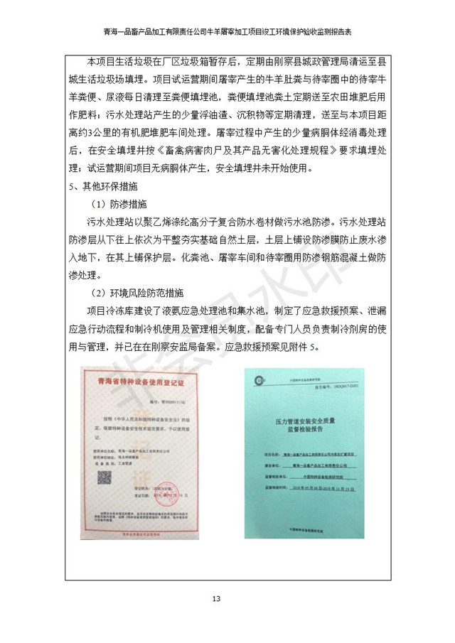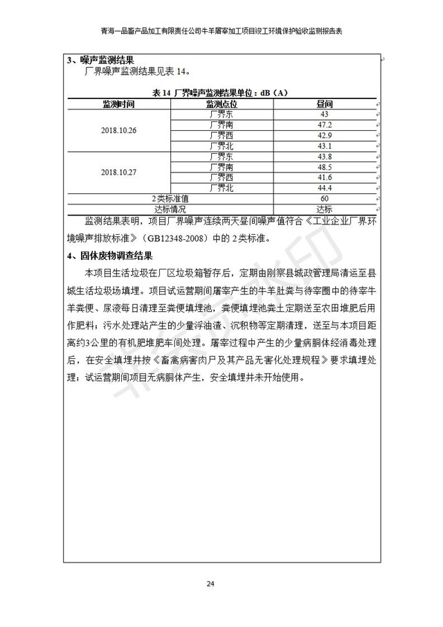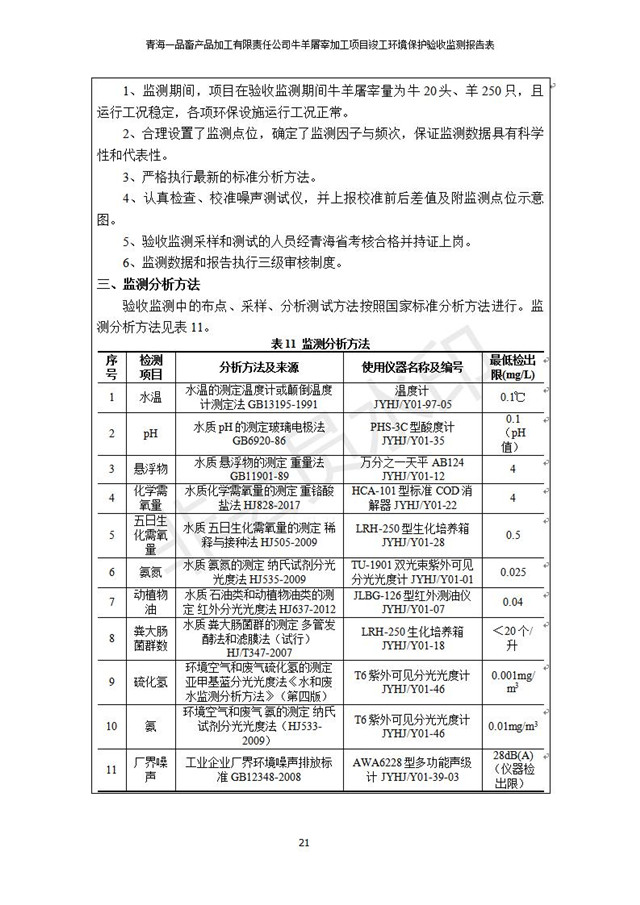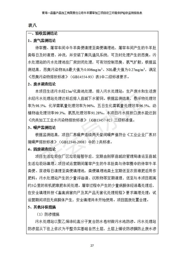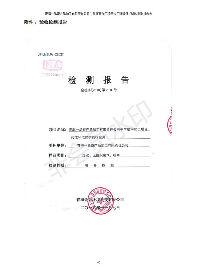青海一品畜產(chǎn)品加工有限責(zé)任公司牛羊屠宰加工項(xiàng)目 竣工環(huán)境保護(hù)驗(yàn)收監(jiān)測(cè)報(bào)告表公示發(fā)布日期:(2019-1-11) 點(diǎn)擊次數(shù):3234 |