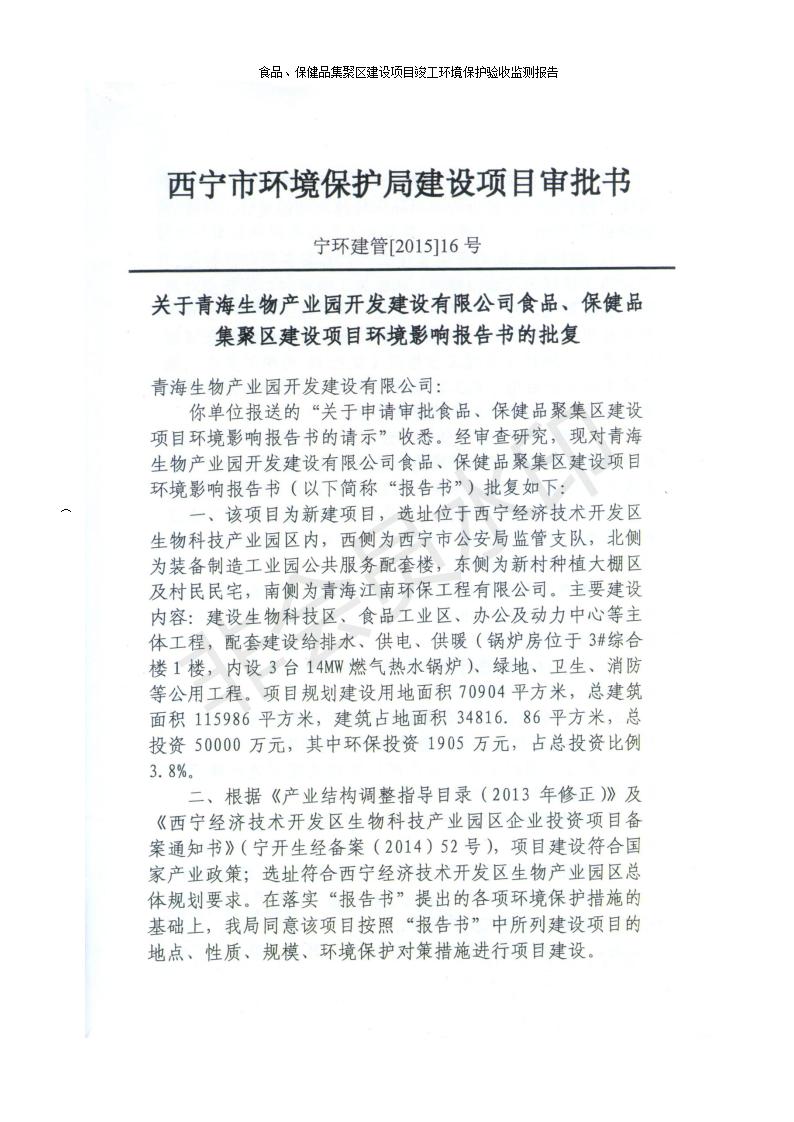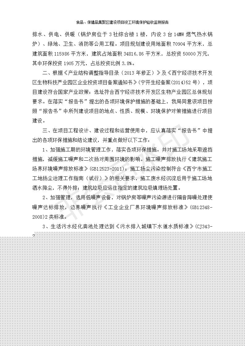 食品、保健品集聚區(qū)建設(shè)項(xiàng)目竣工環(huán)境保護(hù)驗(yàn)收監(jiān)測(cè)報(bào)告公示發(fā)布日期:(2019-3-11) 點(diǎn)擊次數(shù):2232 |