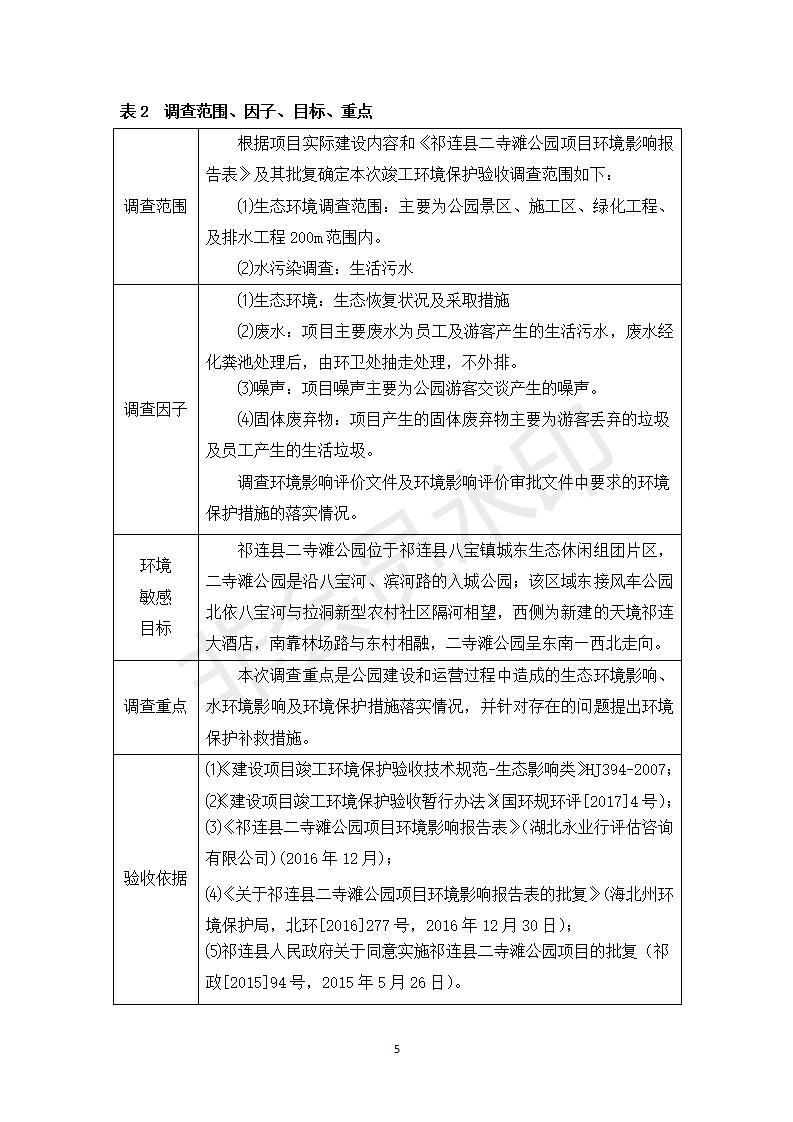 祁連縣二寺灘公園項目竣工環(huán)境保護驗收調查表公示