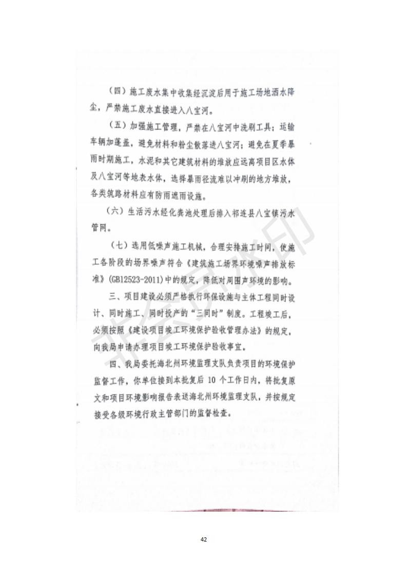 根據中華人民共和國務院令第682號《國務院關于修改〈建設項目環(huán)境保護管理條例〉的決定》和《建設項目竣工環(huán)境保護驗收暫行辦法》(國務院令682號),祁連縣二寺灘公園項目竣工環(huán)境保護驗收內容(包括竣工環(huán)境保護驗收調查表和驗收意見)公示如下。 一、項目名稱:祁連縣二寺灘公園項目竣工環(huán)境保護驗收調查表 二、地點:祁連縣八寶鎮(zhèn)城東生態(tài)組團片區(qū) 三、建設單位:祁連縣環(huán)境保護和林業(yè)局 四、建設內容:公園廣場入口、水景景觀、輔助工程、綠化建設 五、公示時間:二〇一九年三月十一日至二〇一九年四月八日 六、聯(lián)系人:張工 公示期間,對上述公示內容如有異議,請以書面形式反饋,個人須署真實姓名,單位須加蓋公章。