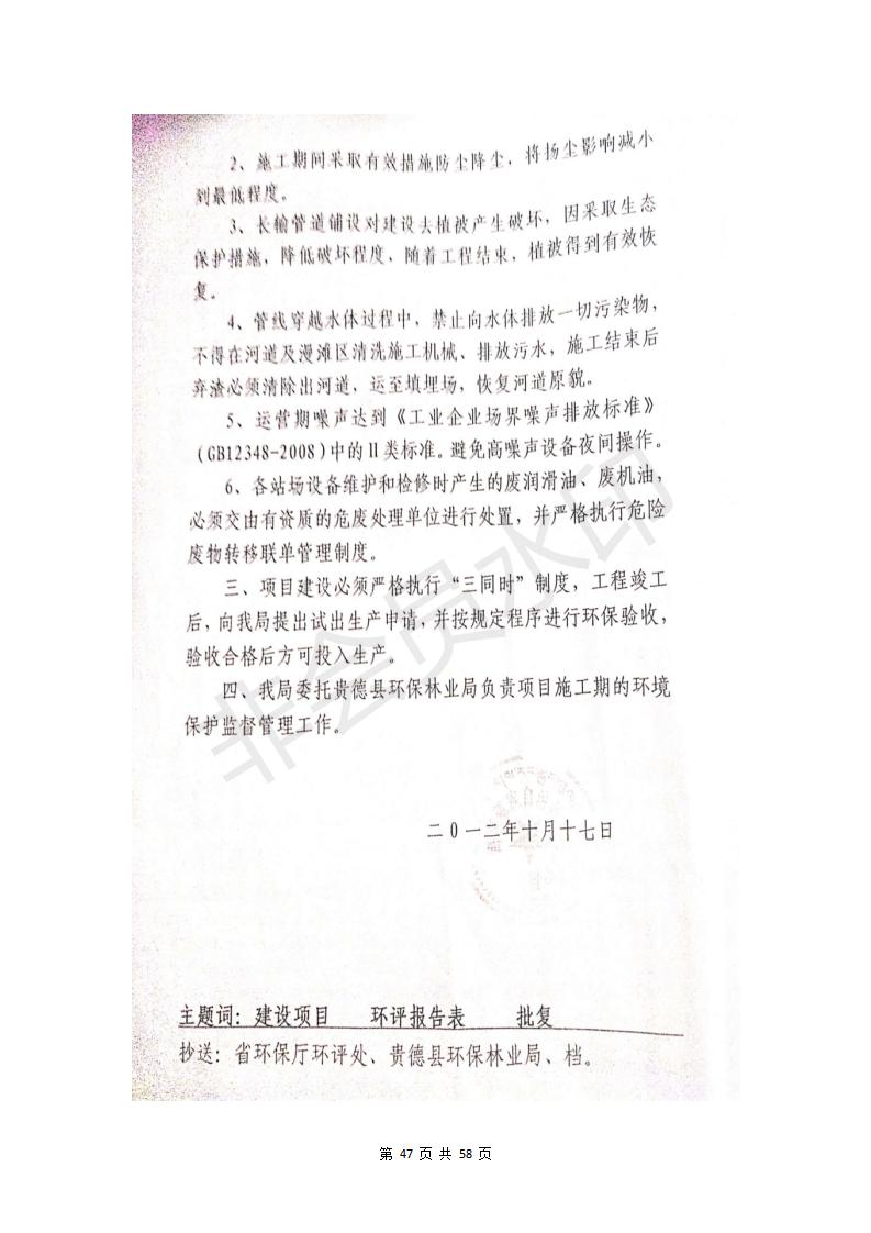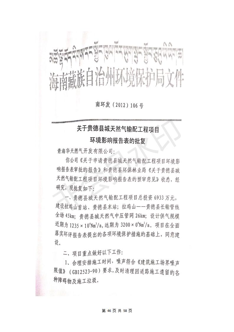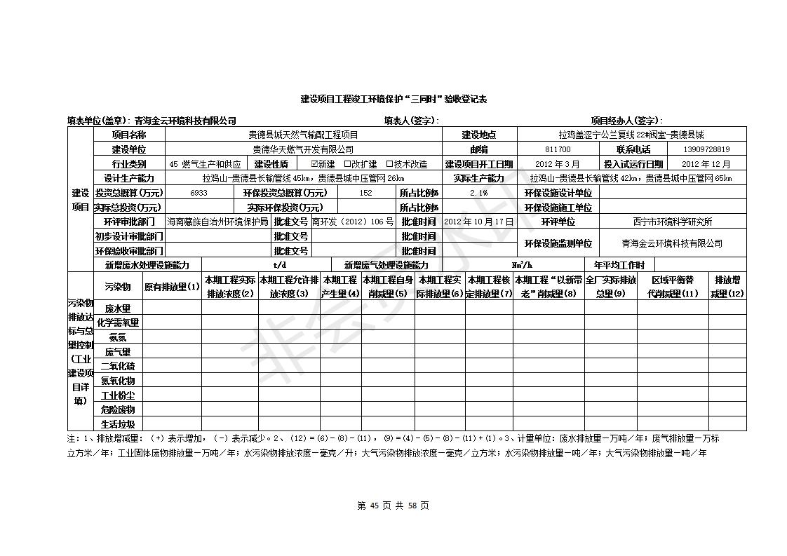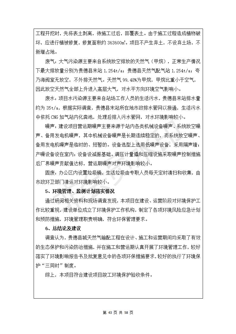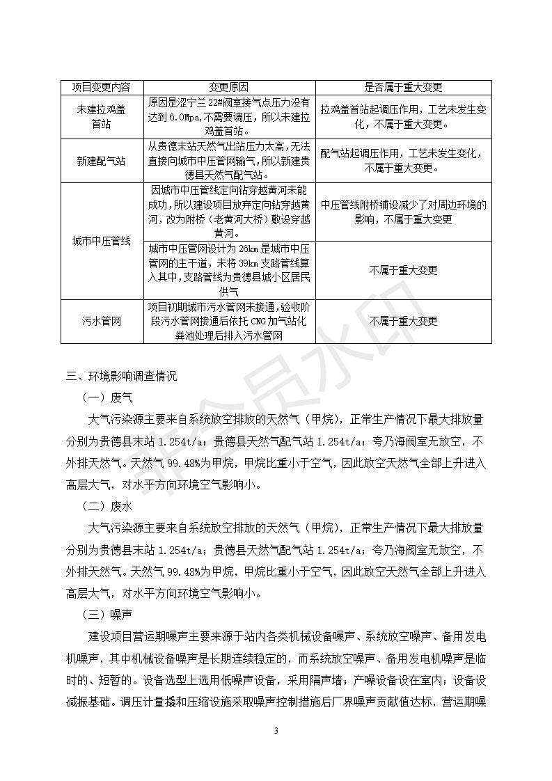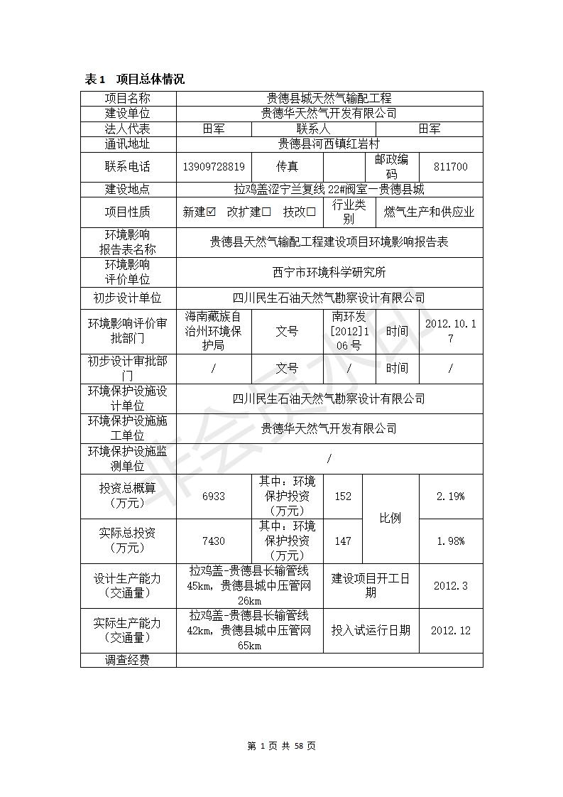 貴德縣城輸配管線(xiàn)工程竣工環(huán)境保護(hù)驗(yàn)收調(diào)查表公示