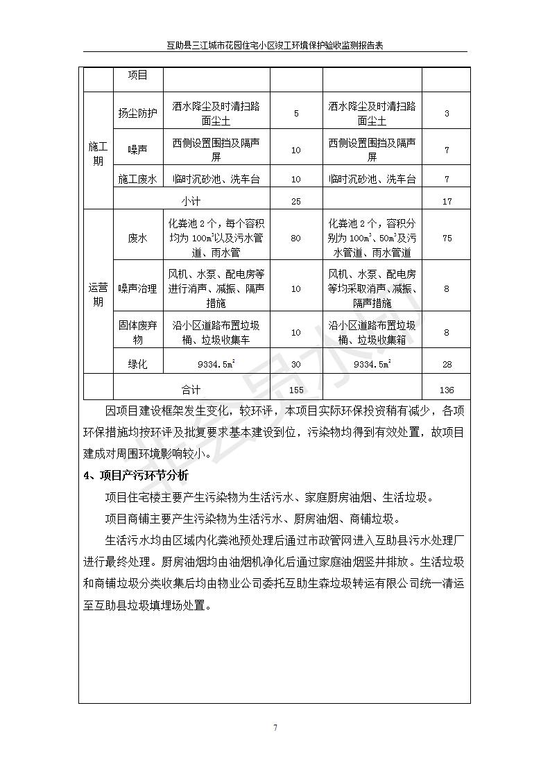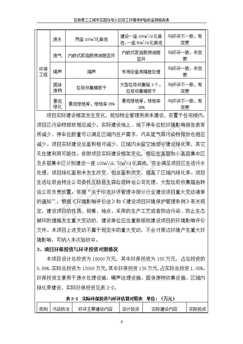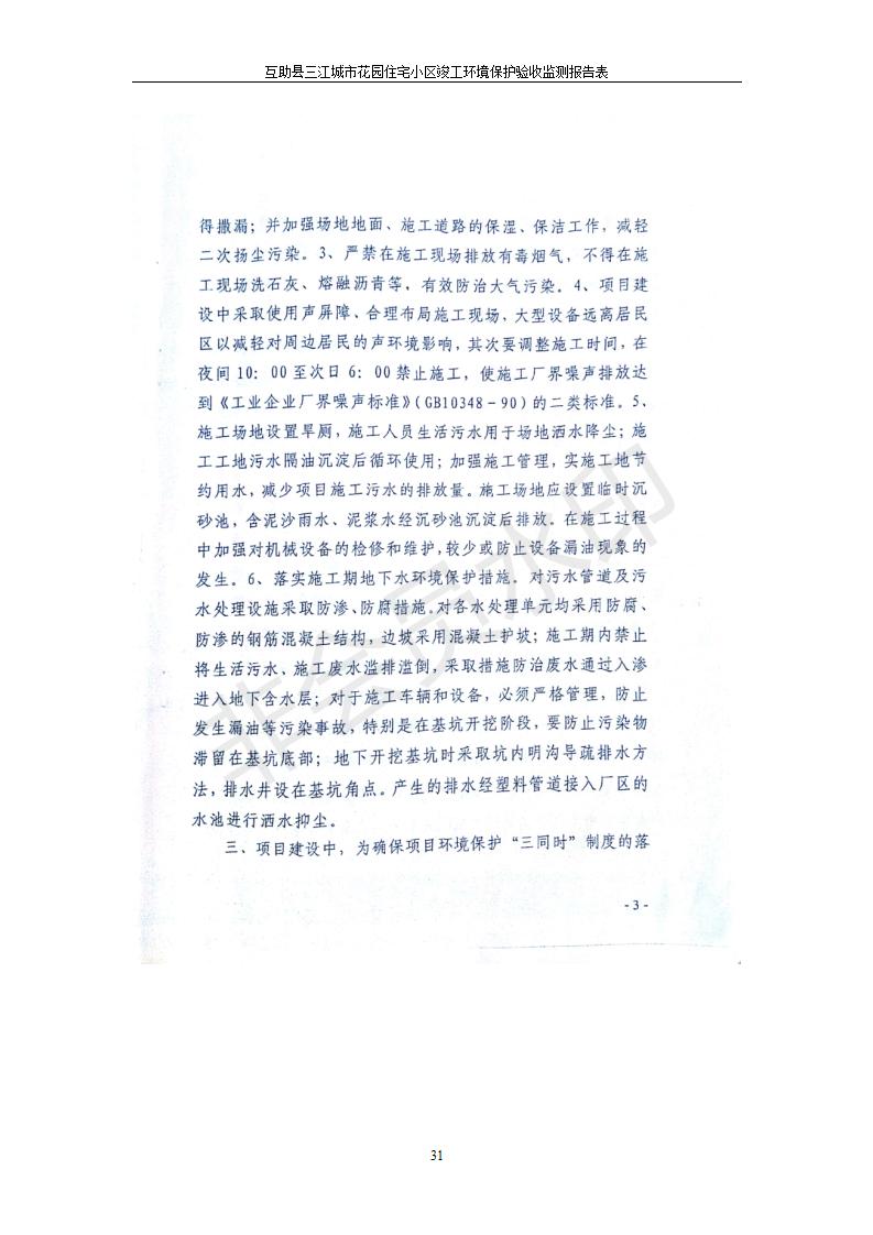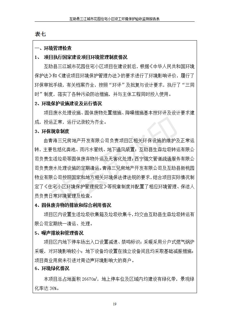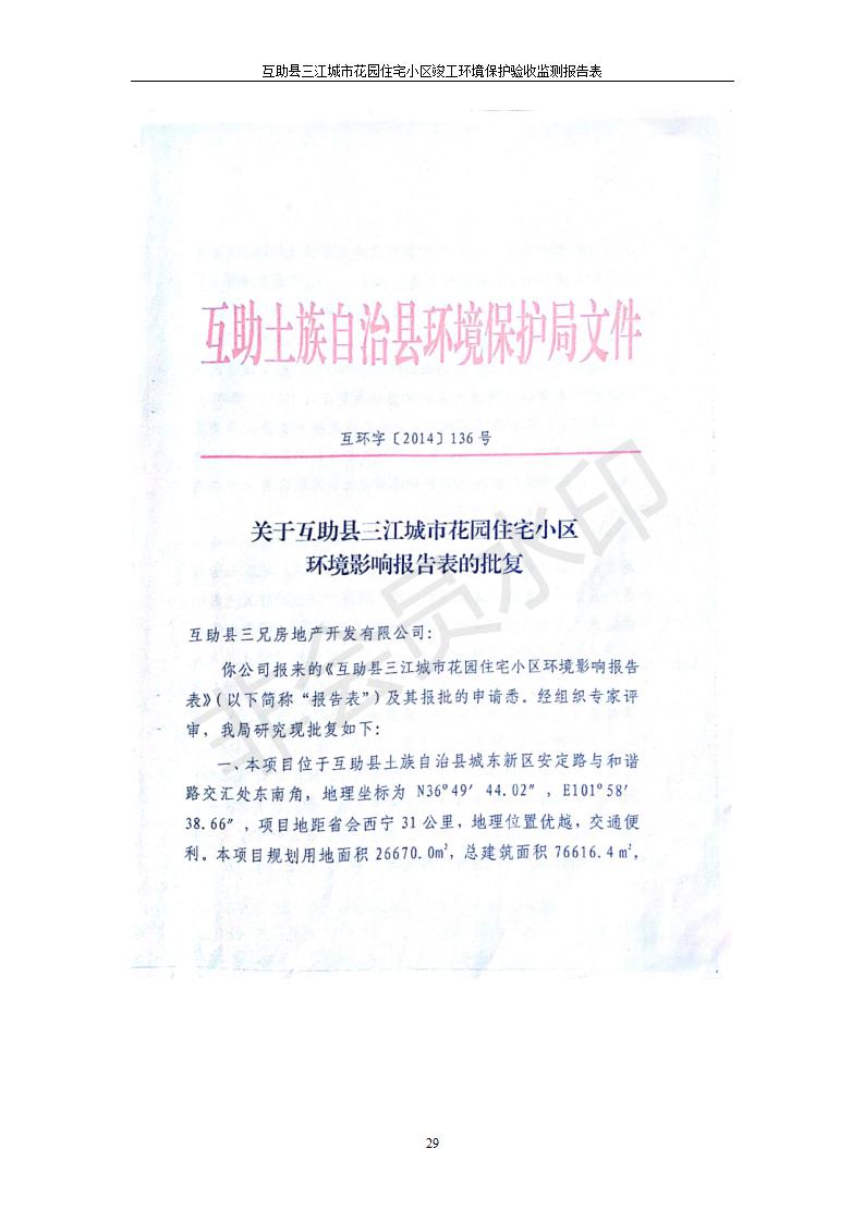 根據(jù)中華人民共和國(guó)國(guó)務(wù)院令第682號(hào)《國(guó)務(wù)院關(guān)于修改〈建設(shè)項(xiàng)目環(huán)境保護(hù)管理?xiàng)l例〉的決定》和《建設(shè)項(xiàng)目竣工環(huán)境保護(hù)驗(yàn)收暫行辦法》(國(guó)務(wù)院令682號(hào)),互助縣三江城市花園住宅小區(qū)(包括竣工環(huán)境保護(hù)驗(yàn)收監(jiān)測(cè)報(bào)告表和驗(yàn)收意見)公示如下。 一、項(xiàng)目名稱: 互助縣三江城市花園住宅小區(qū)竣工環(huán)境保護(hù)驗(yàn)收監(jiān)測(cè)報(bào)告表 二、地點(diǎn):青海省海東市互助土族自治縣威遠(yuǎn)鎮(zhèn)安定路與和諧路交匯處東南角 三、建設(shè)單位:青海三兄房地產(chǎn)開發(fā)有限公司 四、建設(shè)內(nèi)容:項(xiàng)目規(guī)劃用地面積26670.0m2,實(shí)際占地面積26670.0m2,項(xiàng)目占地面積未發(fā)生變化,規(guī)劃設(shè)計(jì)建筑總面積76616.4m2,其中商業(yè)建筑面積8994m2。實(shí)際建筑總面積58639.64m2,其中商業(yè)建筑面積9894.27m2。 五、聯(lián)系人:張工 六、聯(lián)系電 話:0971-6515411 七、公示時(shí)間:二〇一九年六月五日至二〇一九年七月三日 公示期間,對(duì)上述公示內(nèi)容如有異議,請(qǐng)以書面形式反饋,個(gè)人須署真實(shí)姓名,單位須加蓋公章。