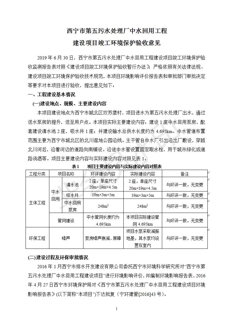 根據(jù)中華人民共和國國務(wù)院令第682號(hào)《國務(wù)院關(guān)于修改〈建設(shè)項(xiàng)目環(huán)境保護(hù)管理?xiàng)l例〉的決定》和《建設(shè)項(xiàng)目竣工環(huán)境保護(hù)驗(yàn)收暫行辦法》(國務(wù)院令682號(hào)),西寧市第五污水處理廠中水回用工程建設(shè)項(xiàng)目(包括竣工環(huán)境保護(hù)驗(yàn)收監(jiān)測報(bào)告表和驗(yàn)收意見)公示如下。 一、項(xiàng)目名稱:西寧市第五污水處理廠中水回用工程建設(shè)項(xiàng)目 二、地點(diǎn):西寧市城北區(qū)廿十里鋪雙蘇堡 三、建設(shè)單位:西寧市排水開發(fā)建設(shè)有限公司