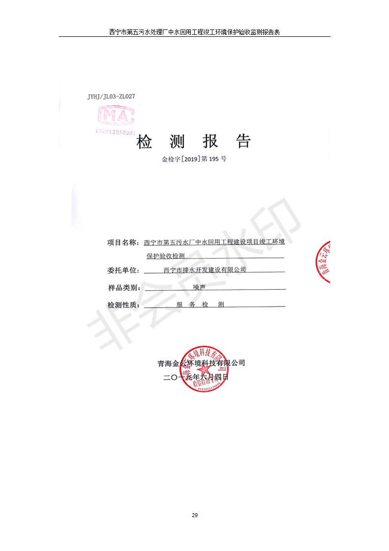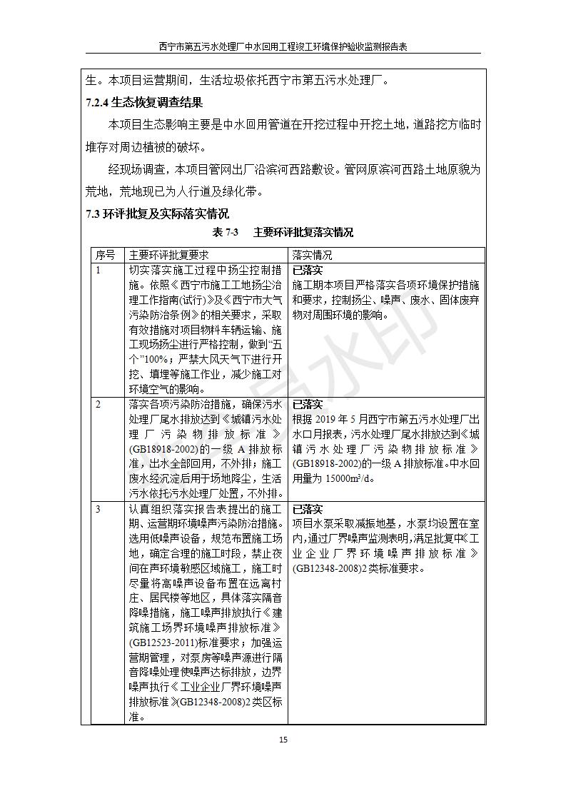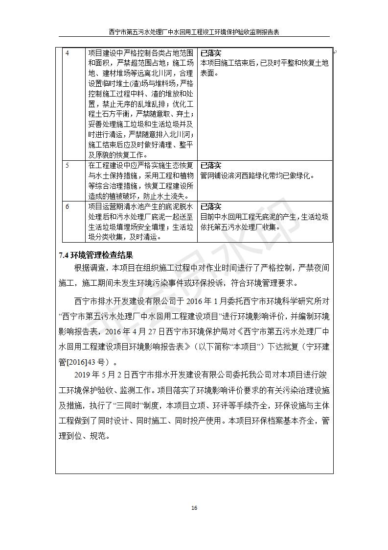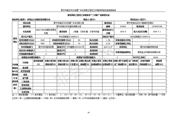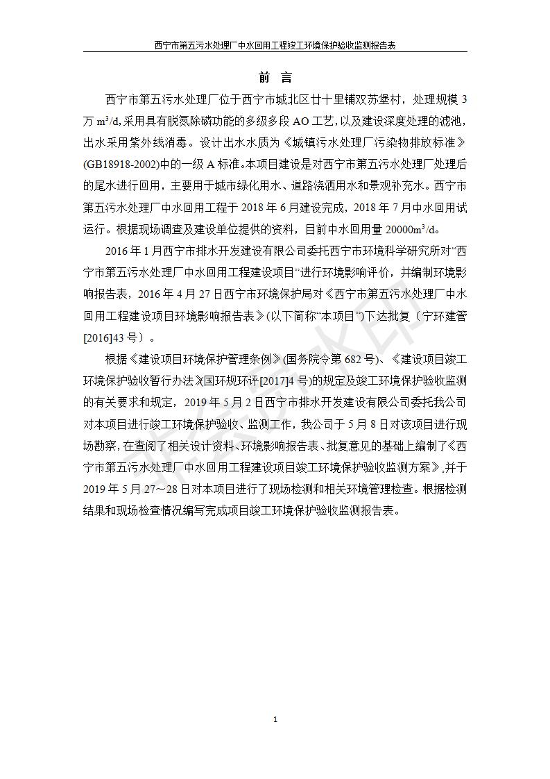 西寧市第五污水處理廠中水回用工程建設(shè)項(xiàng)目竣工環(huán)境保護(hù)驗(yàn)收監(jiān)測報(bào)告表公示發(fā)布日期:(2019-7-10) 點(diǎn)擊次數(shù):2560 |