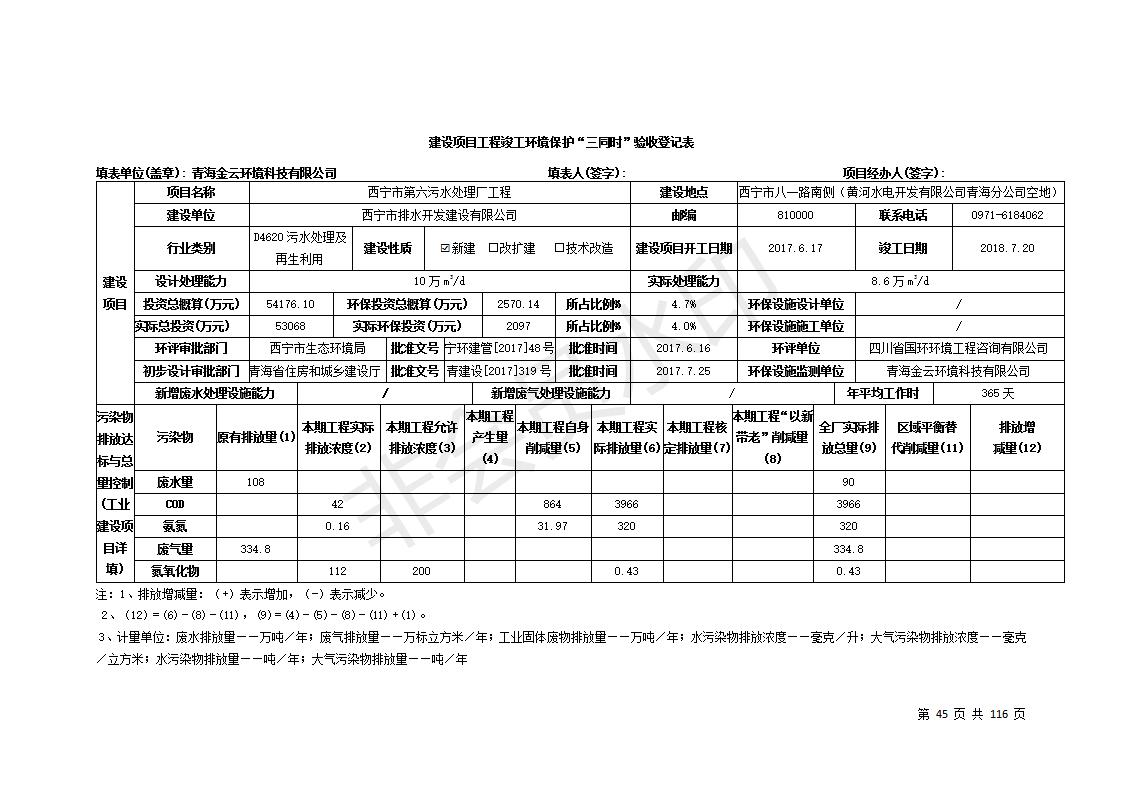 西寧市第六污水處理廠工程竣工環(huán)境保護(hù)驗(yàn)收公示發(fā)布日期:(2019-7-11) 點(diǎn)擊次數(shù):2920 |