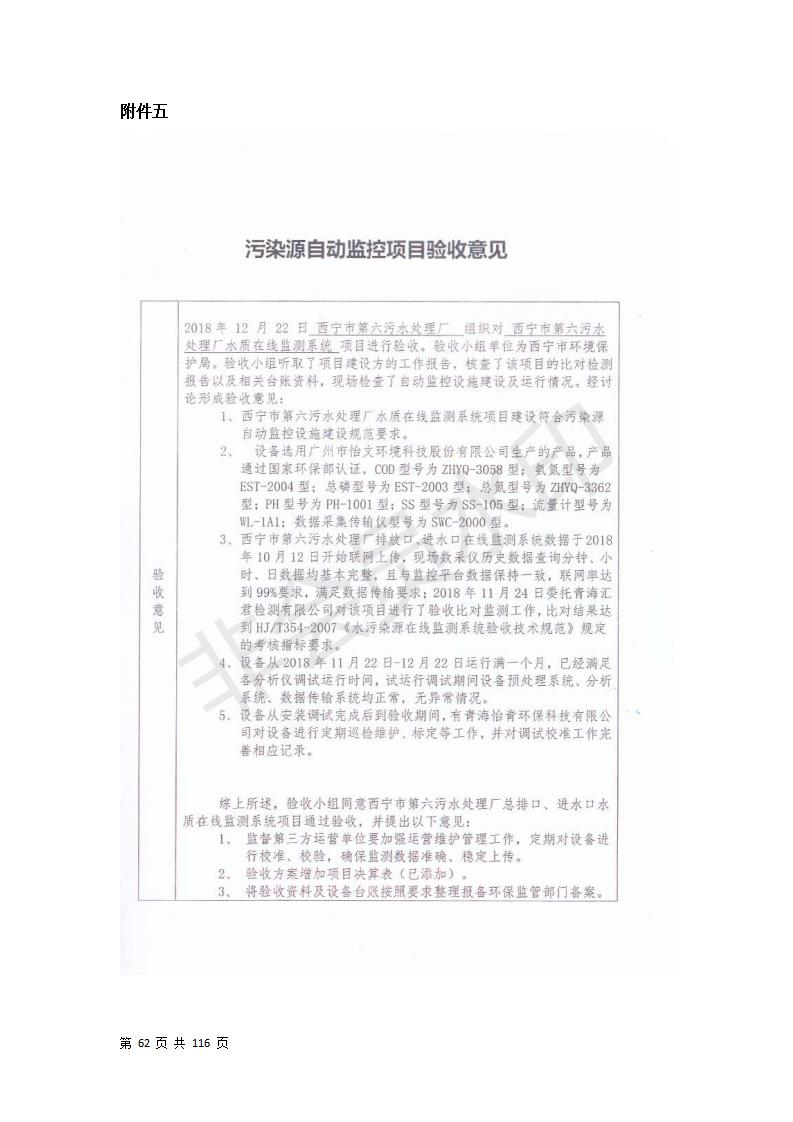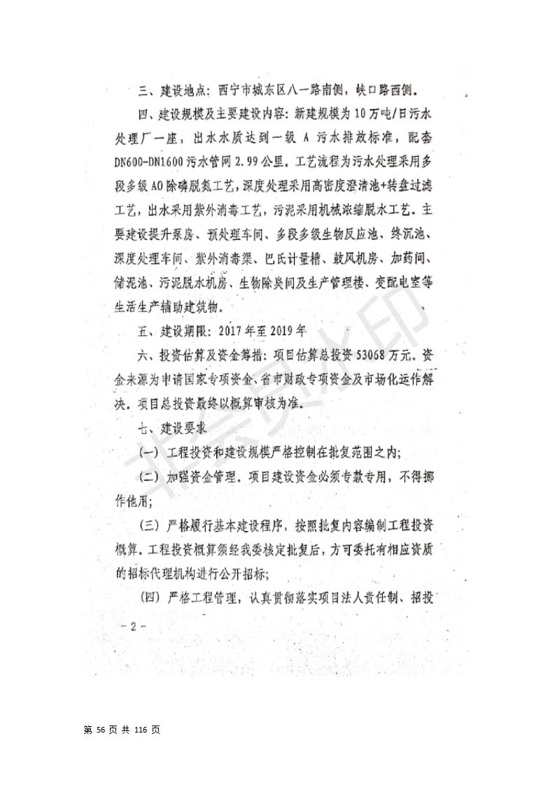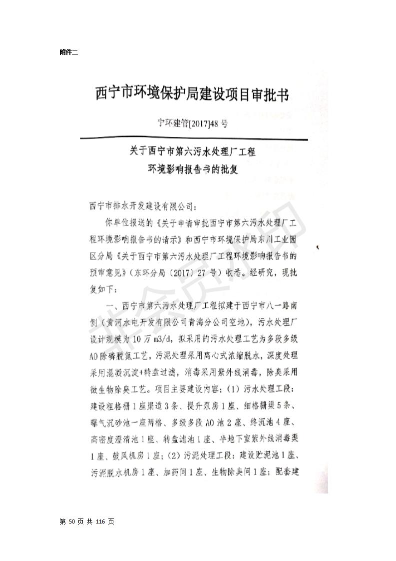 根據(jù)中華人民共和國(guó)國(guó)務(wù)院令第682號(hào)《國(guó)務(wù)院關(guān)于修改〈建設(shè)項(xiàng)目環(huán)境保護(hù)管理?xiàng)l例〉的決定》和《建設(shè)項(xiàng)目竣工環(huán)境保護(hù)驗(yàn)收暫行辦法》(國(guó)務(wù)院令682號(hào)),西寧市第六污水處理廠工程(包括竣工環(huán)境保護(hù)驗(yàn)收監(jiān)測(cè)報(bào)告和驗(yàn)收意見)公示如下。 一、項(xiàng)目名稱:西寧市第六污水處理廠工程 二、地點(diǎn):西寧市第六污水處理廠工程建于西寧市八一路南側(cè)(黃河水電開發(fā)有限公司青海分公司空地) 三、建設(shè)單位:西寧市排水開發(fā)建設(shè)有限公司 四、建設(shè)內(nèi)容:處理生活污水規(guī)模為10萬m3/d污水處理廠、輔助設(shè)施、環(huán)保設(shè)施等。 五、聯(lián)系人:張工 六、聯(lián)系電話:0971-6515411 七、公示時(shí)間:二〇一九年七月十一日至二〇一九年八月七日 公示期間,對(duì)上述公示內(nèi)容如有異議,請(qǐng)以書面形式反饋,個(gè)人須署真實(shí)姓名,單位須加蓋公章。