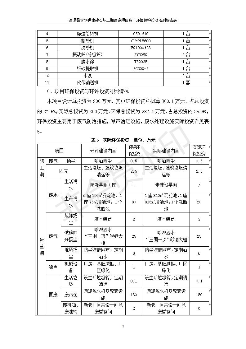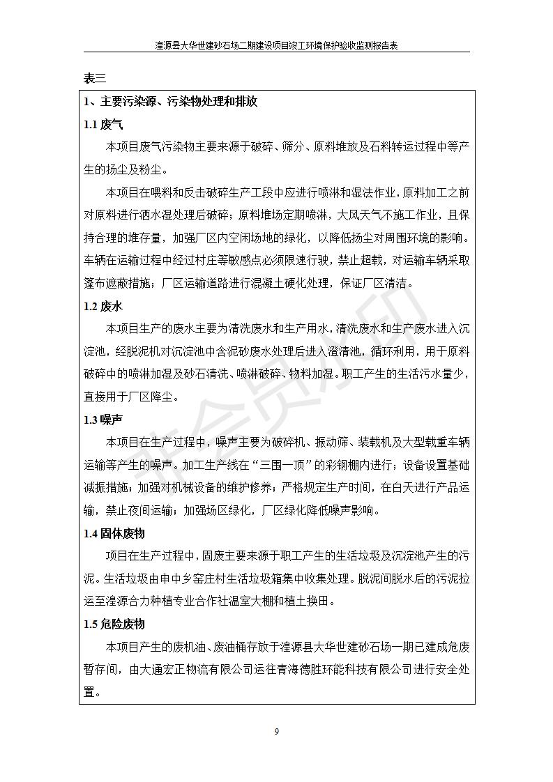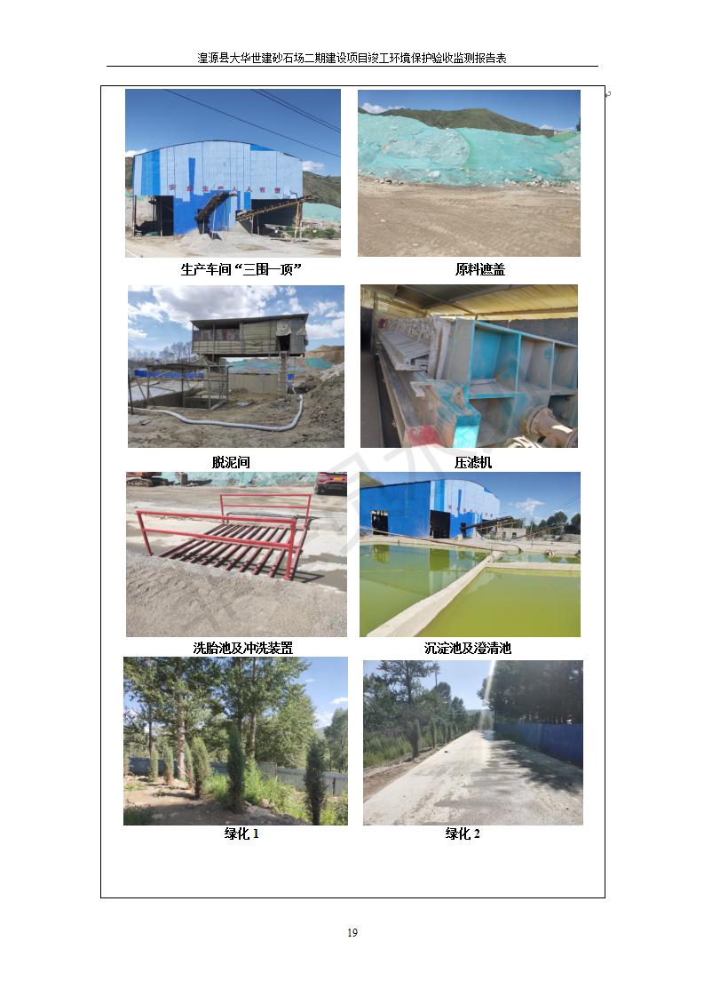 根據(jù)中華人民共和國(guó)國(guó)務(wù)院令第682號(hào)《國(guó)務(wù)院關(guān)于修改〈建設(shè)項(xiàng)目環(huán)境保護(hù)管理?xiàng)l例〉的決定》和《建設(shè)項(xiàng)目竣工環(huán)境保護(hù)驗(yàn)收暫行辦法》(國(guó)務(wù)院令682號(hào)),湟源大華世建砂石場(chǎng)湟源縣大華世建砂石場(chǎng)二期建設(shè)項(xiàng)目(包括竣工環(huán)境保護(hù)驗(yàn)收監(jiān)測(cè)報(bào)告表和驗(yàn)收意見)公示如下。 一、項(xiàng)目名稱:湟源縣大華世建砂石場(chǎng)二期建設(shè)項(xiàng)目 二、地點(diǎn):湟源縣申中鄉(xiāng)窯莊村沙崗大小灣 三、建設(shè)單位:湟源大華世建砂石場(chǎng) 四、建設(shè)內(nèi)容:項(xiàng)目主要建設(shè)砂石料產(chǎn)品加工生產(chǎn)區(qū)、原料堆場(chǎng)、產(chǎn)品堆場(chǎng)、辦公區(qū)等。五、聯(lián)系人:張工 六、聯(lián)系電 話:0971-6515411 七、公示時(shí)間:二〇一九年七月二十五日至二〇一九年八月二十一日公示期間,對(duì)上述公示內(nèi)容如有異議,請(qǐng)以書面形式反饋,個(gè)人須署真實(shí)姓名,單位須加蓋公章。
