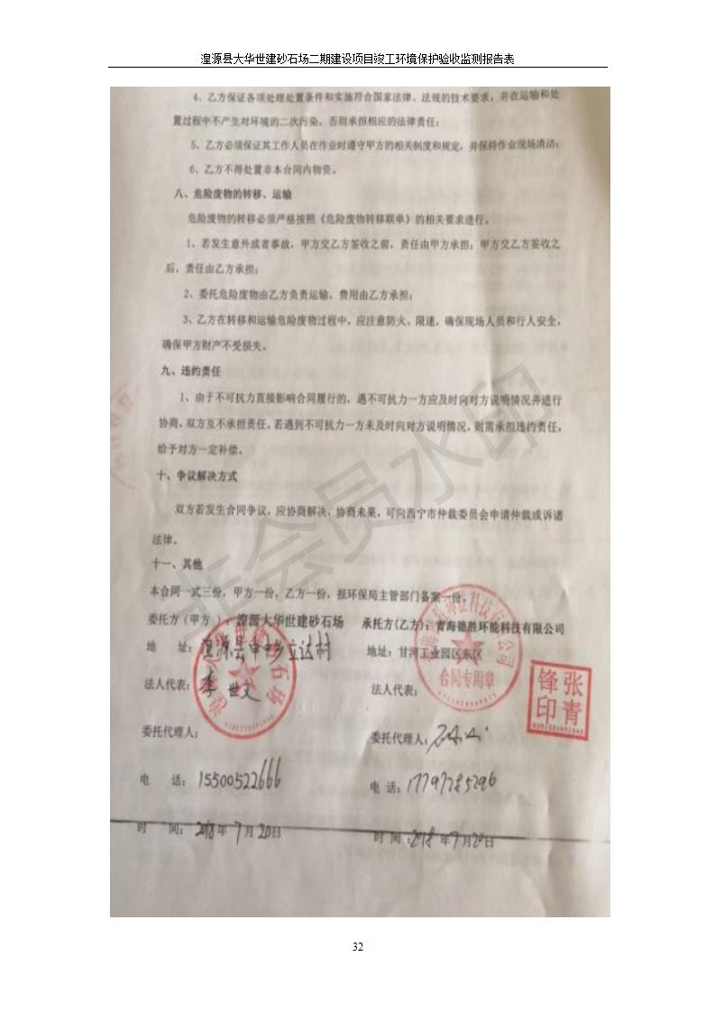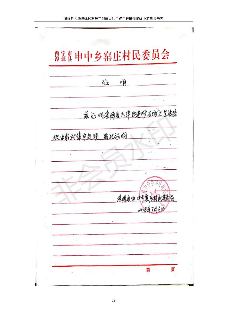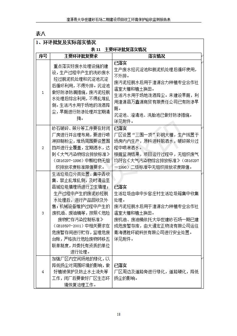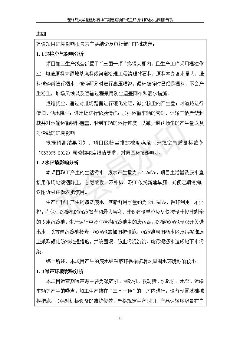 根據(jù)中華人民共和國(guó)國(guó)務(wù)院令第682號(hào)《國(guó)務(wù)院關(guān)于修改〈建設(shè)項(xiàng)目環(huán)境保護(hù)管理?xiàng)l例〉的決定》和《建設(shè)項(xiàng)目竣工環(huán)境保護(hù)驗(yàn)收暫行辦法》(國(guó)務(wù)院令682號(hào)),湟源大華世建砂石場(chǎng)湟源縣大華世建砂石場(chǎng)二期建設(shè)項(xiàng)目(包括竣工環(huán)境保護(hù)驗(yàn)收監(jiān)測(cè)報(bào)告表和驗(yàn)收意見)公示如下。 一、項(xiàng)目名稱:湟源縣大華世建砂石場(chǎng)二期建設(shè)項(xiàng)目 二、地點(diǎn):湟源縣申中鄉(xiāng)窯莊村沙崗大小灣 三、建設(shè)單位:湟源大華世建砂石場(chǎng) 四、建設(shè)內(nèi)容:項(xiàng)目主要建設(shè)砂石料產(chǎn)品加工生產(chǎn)區(qū)、原料堆場(chǎng)、產(chǎn)品堆場(chǎng)、辦公區(qū)等。五、聯(lián)系人:張工 六、聯(lián)系電 話:0971-6515411 七、公示時(shí)間:二〇一九年七月二十五日至二〇一九年八月二十一日公示期間,對(duì)上述公示內(nèi)容如有異議,請(qǐng)以書面形式反饋,個(gè)人須署真實(shí)姓名,單位須加蓋公章。