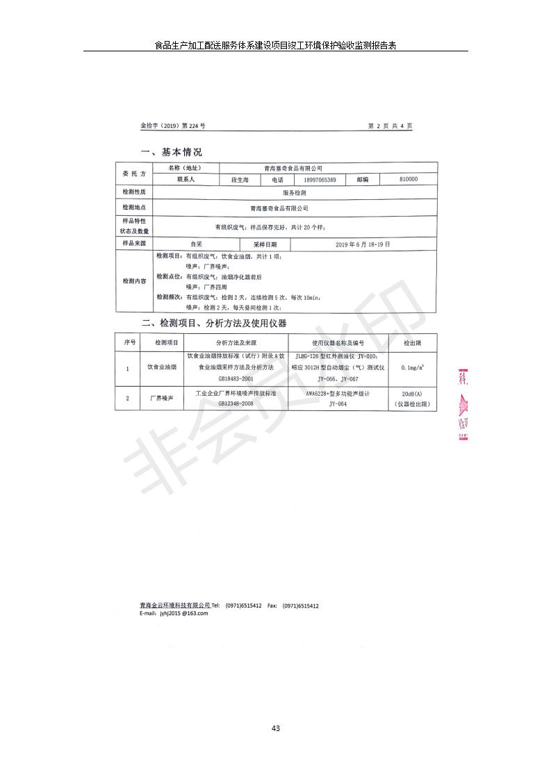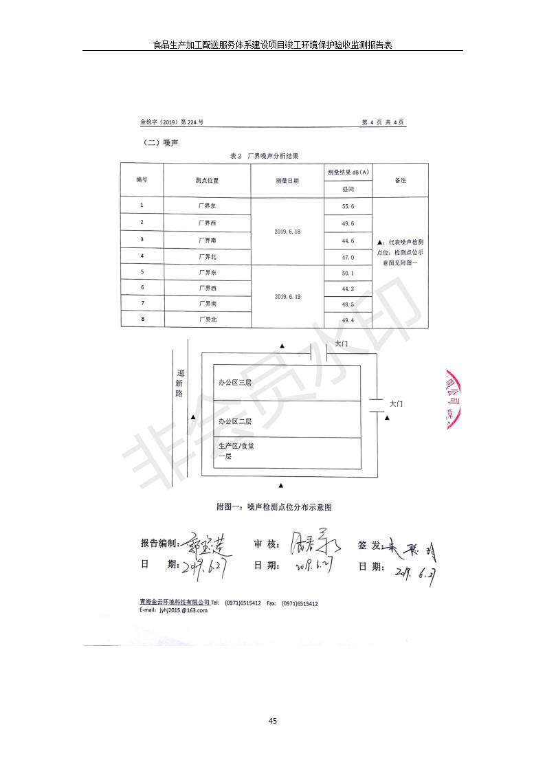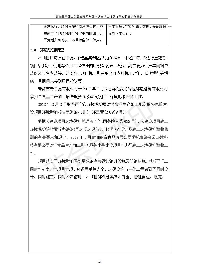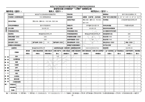根據(jù)中華人民共和國(guó)國(guó)務(wù)院令第682號(hào)《國(guó)務(wù)院關(guān)于修改〈建設(shè)項(xiàng)目環(huán)境保護(hù)管理?xiàng)l例〉的決定》和《建設(shè)項(xiàng)目竣工環(huán)境保護(hù)驗(yàn)收暫行辦法》(國(guó)務(wù)院令682號(hào)),食品生產(chǎn)加工配送服務(wù)體系建設(shè)項(xiàng)目(包括竣工環(huán)境保護(hù)驗(yàn)收監(jiān)測(cè)報(bào)告表和驗(yàn)收意見(jiàn))公示如下。 一、項(xiàng)目名稱(chēng):食品生產(chǎn)加工配送服務(wù)體系建設(shè)項(xiàng)目 二、地點(diǎn):西寧市城北區(qū)生物園區(qū)迎新路5號(hào)食品保健品集聚區(qū)1號(hào)樓 六、聯(lián)系電 話:0971-6515411 七、公示時(shí)間:二〇一九年九月二十日至二〇一九年十月二十二日 公示期間,對(duì)上述公示內(nèi)容如有異議,請(qǐng)以書(shū)面形式反饋,個(gè)人須署真實(shí)姓名,單位須加蓋公章。