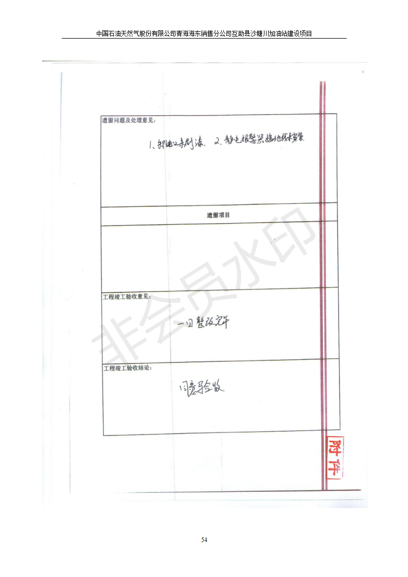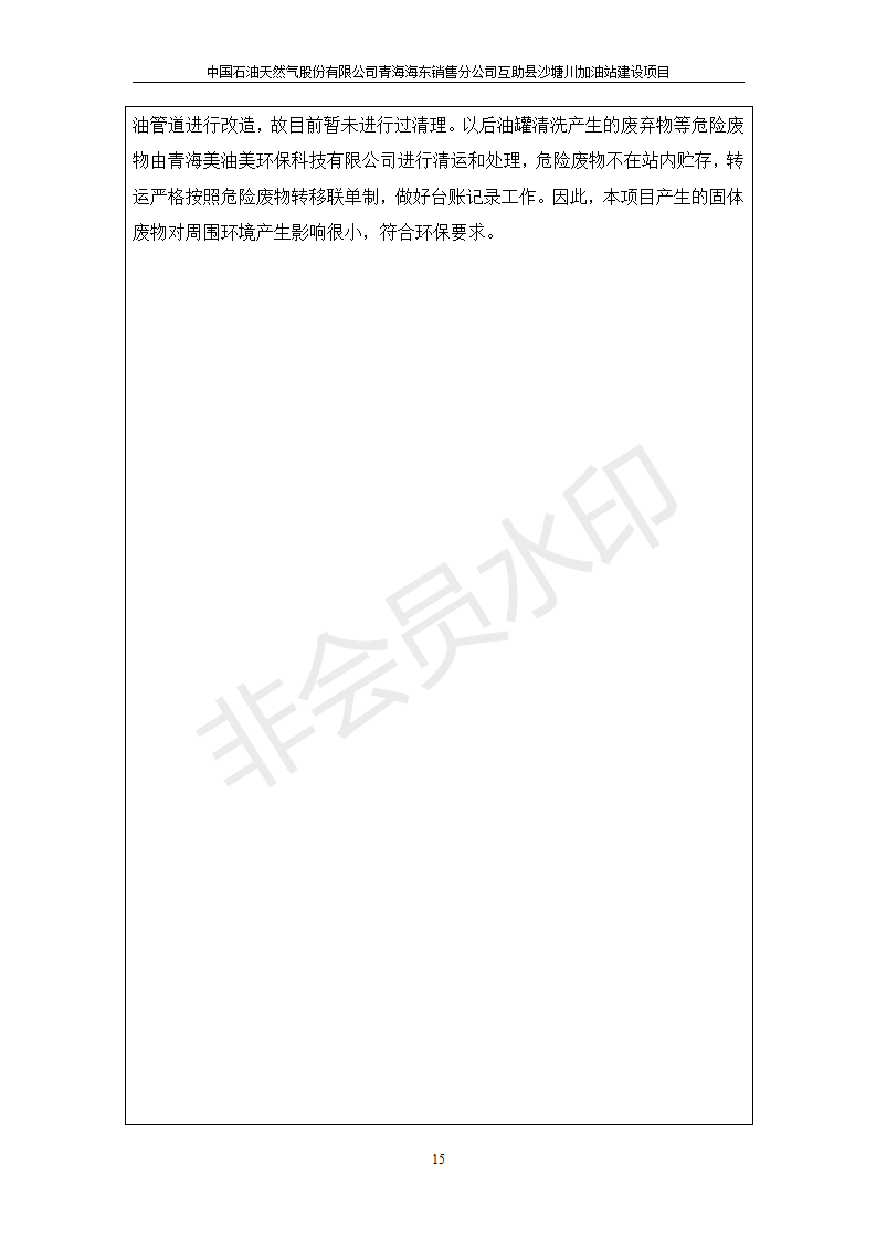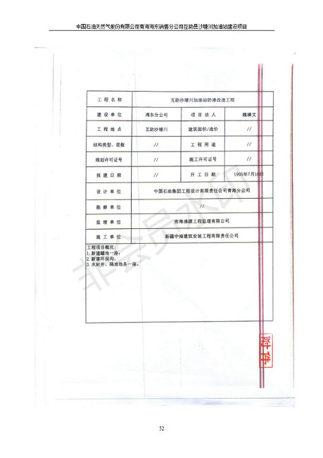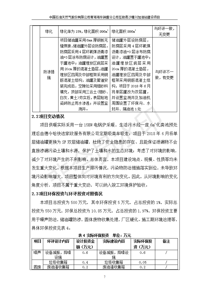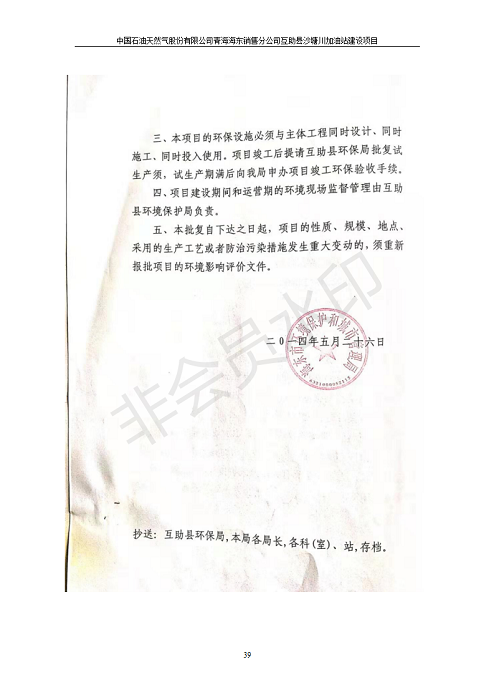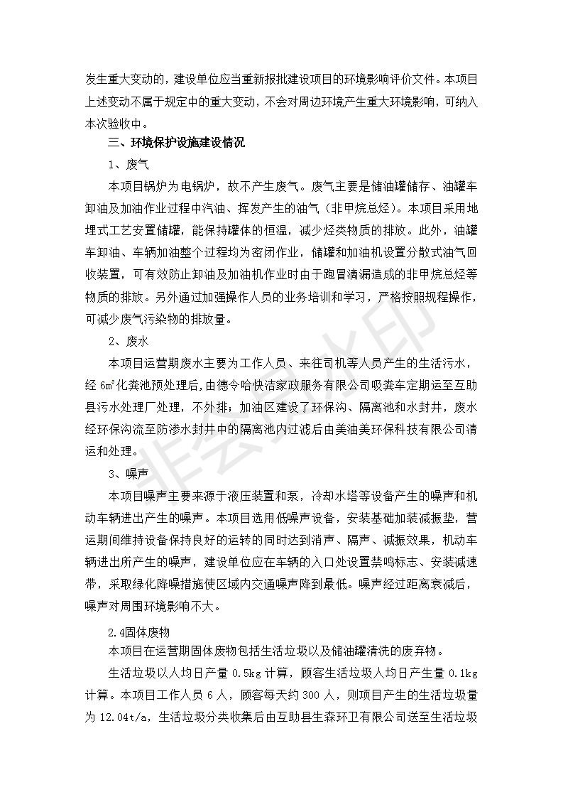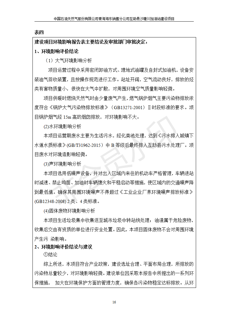 根據(jù)中華人民共和國國務(wù)院令第682號《國務(wù)院關(guān)于修改〈建設(shè)項目環(huán)境保護管理條例〉的決定》和《建設(shè)項目竣工環(huán)境保護驗收暫行辦法》(國務(wù)院令682號),互助縣沙塘川加油站建設(shè)項目(包括竣工環(huán)境保護驗收監(jiān)測報告表和驗收意見)公示如下。 一、項目名稱:互助縣沙塘川加油站建設(shè)項目 二、地點:互助縣塘川鎮(zhèn)包家口村 六、聯(lián)系電話:0971-6515411 七、公示時間:二〇一九年九月二十七日至二〇一九年十月二十九日 公示期間,對上述公示內(nèi)容如有異議,請以書面形式反饋,個人須署真實姓名,單位須加蓋公章。