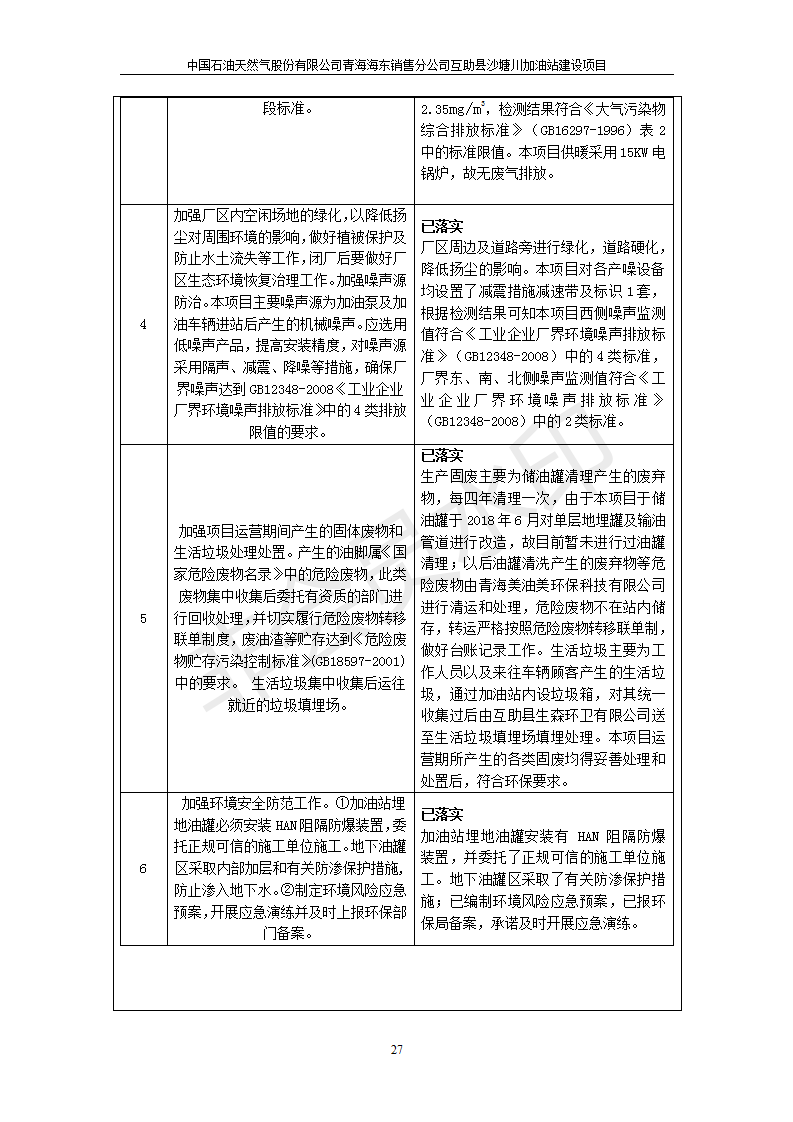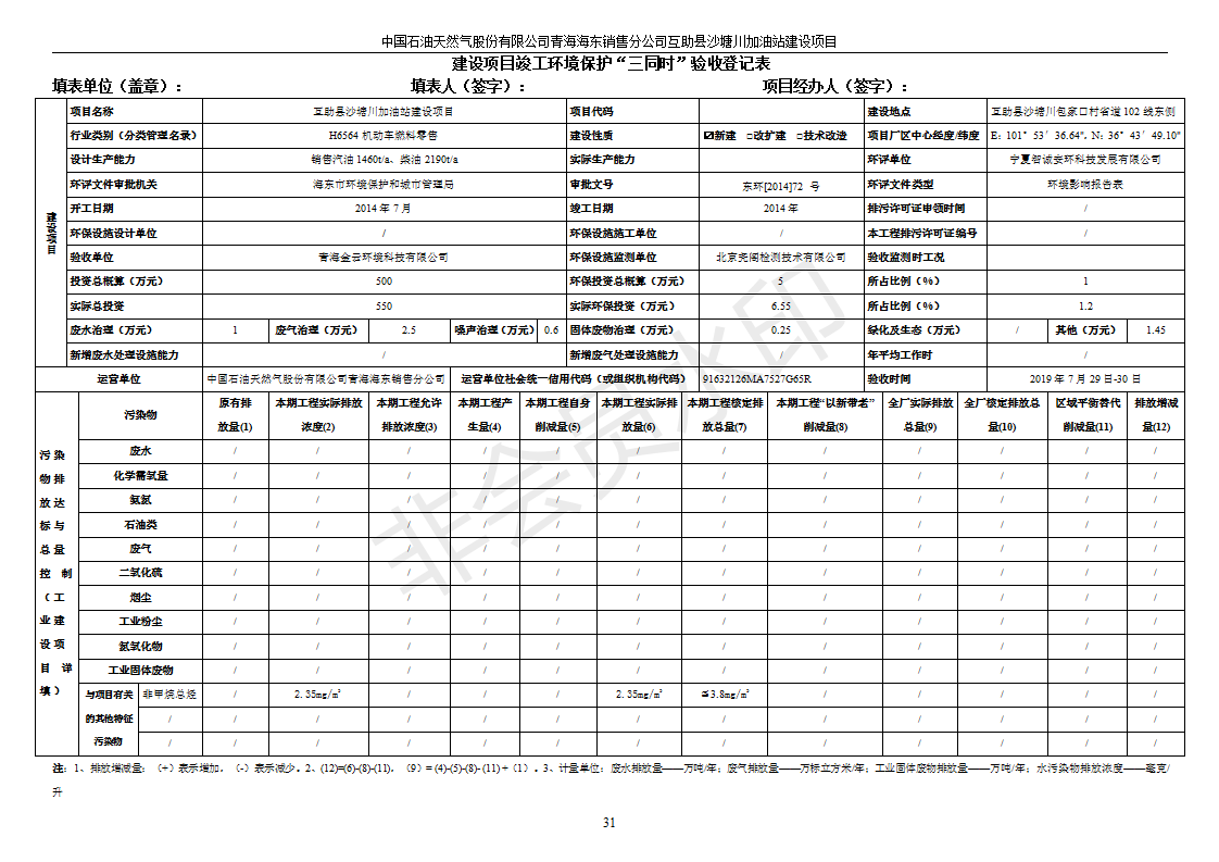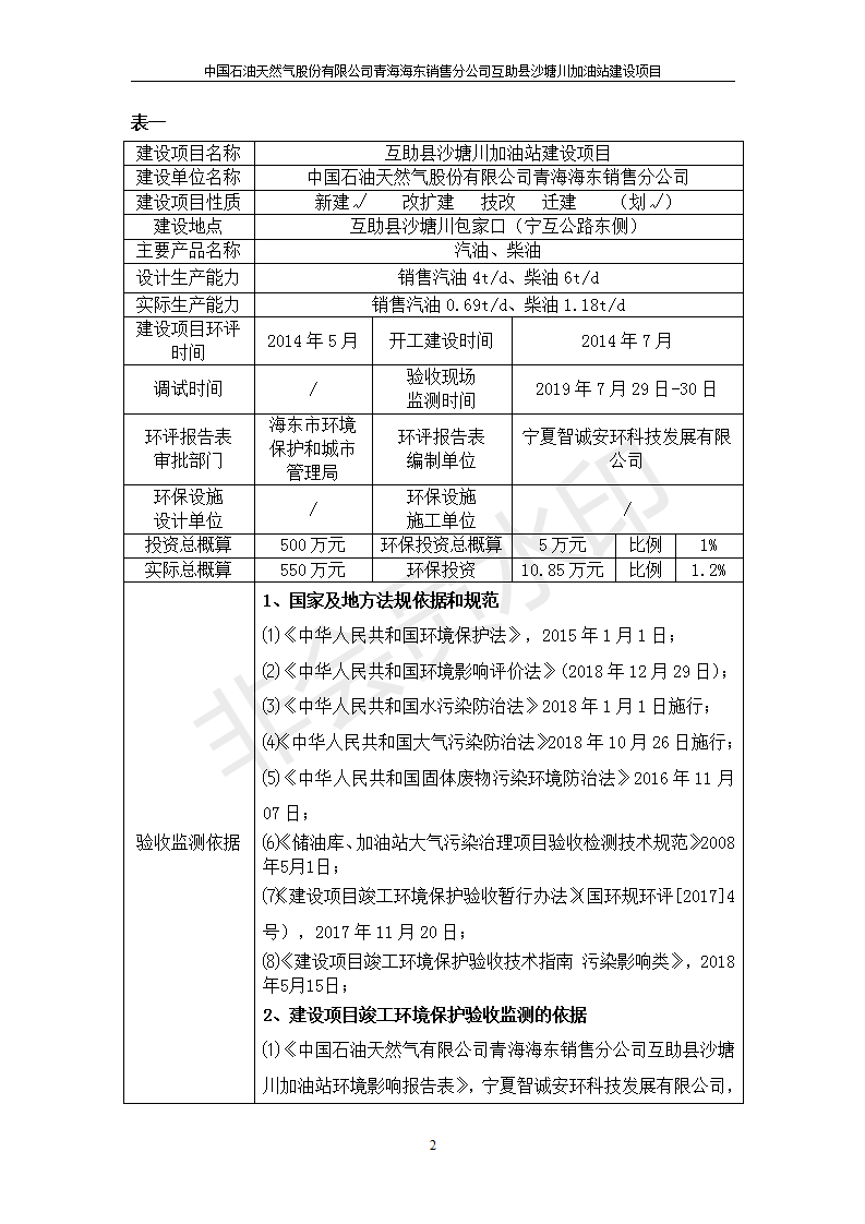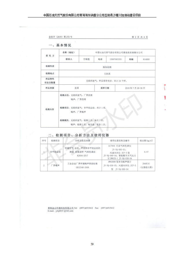 互助縣沙塘川加油站建設(shè)項目竣工環(huán)境保護驗收監(jiān)測報告表發(fā)布日期:(2019-9-27) 點擊次數(shù):2349 |