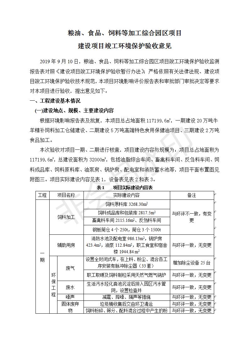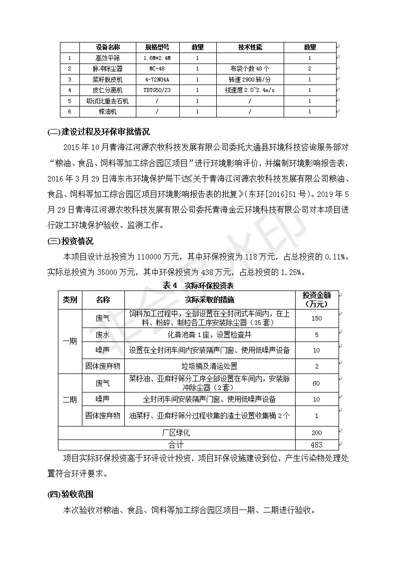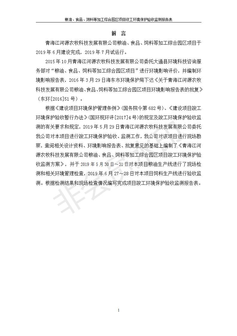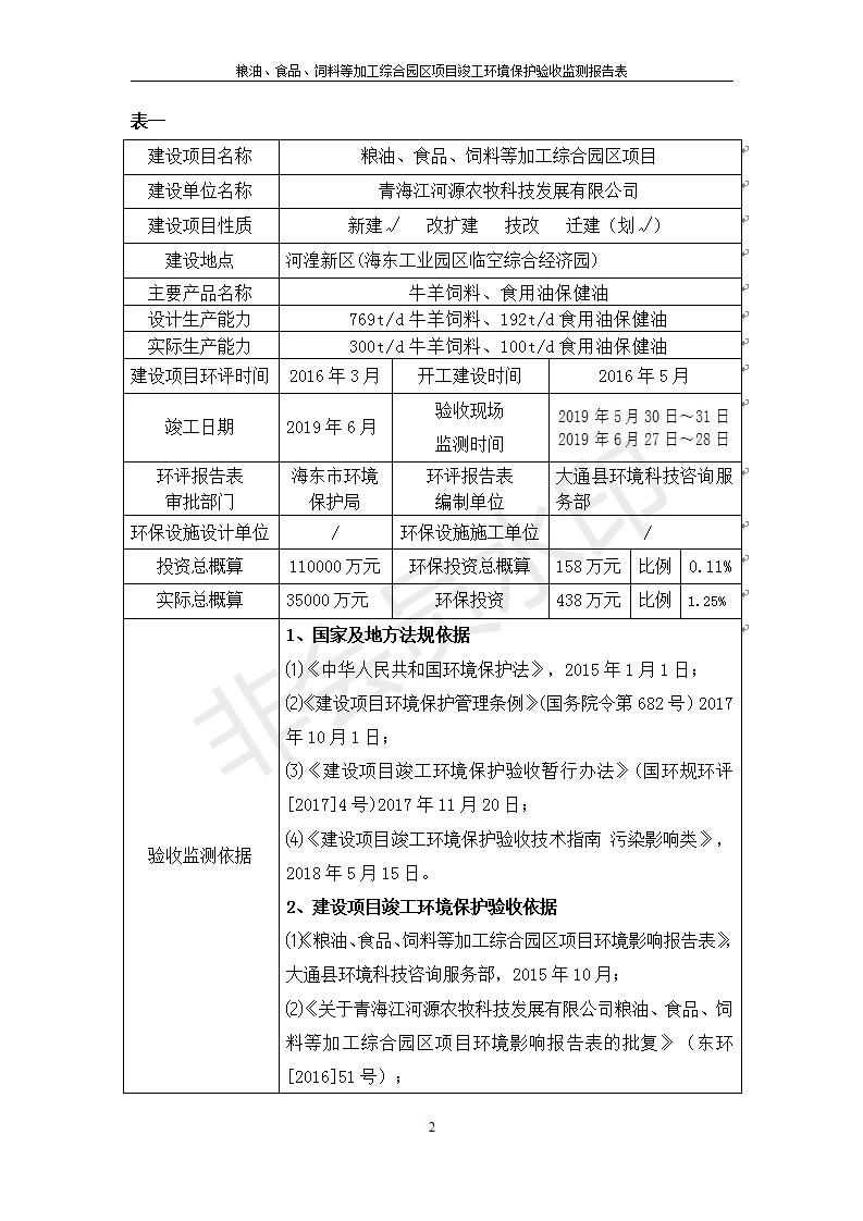 根據(jù)中華人民共和國國務(wù)院令第682號《國務(wù)院關(guān)于修改〈建設(shè)項目環(huán)境保護(hù)管理條例〉的決定》和《建設(shè)項目竣工環(huán)境保護(hù)驗收暫行辦法》(國務(wù)院令682號),糧油、食品、飼料等加工綜合園區(qū)項目竣工環(huán)境保護(hù)驗收監(jiān)測報告表(包括竣工環(huán)境保護(hù)驗收監(jiān)測報告表和驗收意見)公示如下。 一、項目名稱:糧油、食品、飼料等加工綜合園區(qū)項目 二、地點:河湟新區(qū)(海東工業(yè)園區(qū)臨空綜合經(jīng)濟(jì)園) 六、聯(lián)系電話:0971-6515411 七、公示時間:二〇一九年十月九日至二〇一九年十一月五日 公示期間,對上述公示內(nèi)容如有異議,請以書面形式反饋,個人須署真實姓名,單位須加蓋公章。