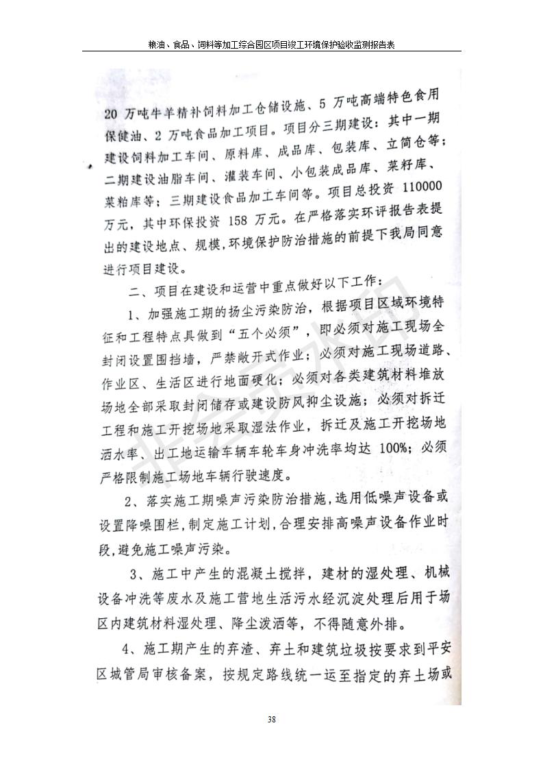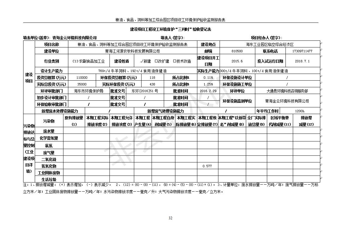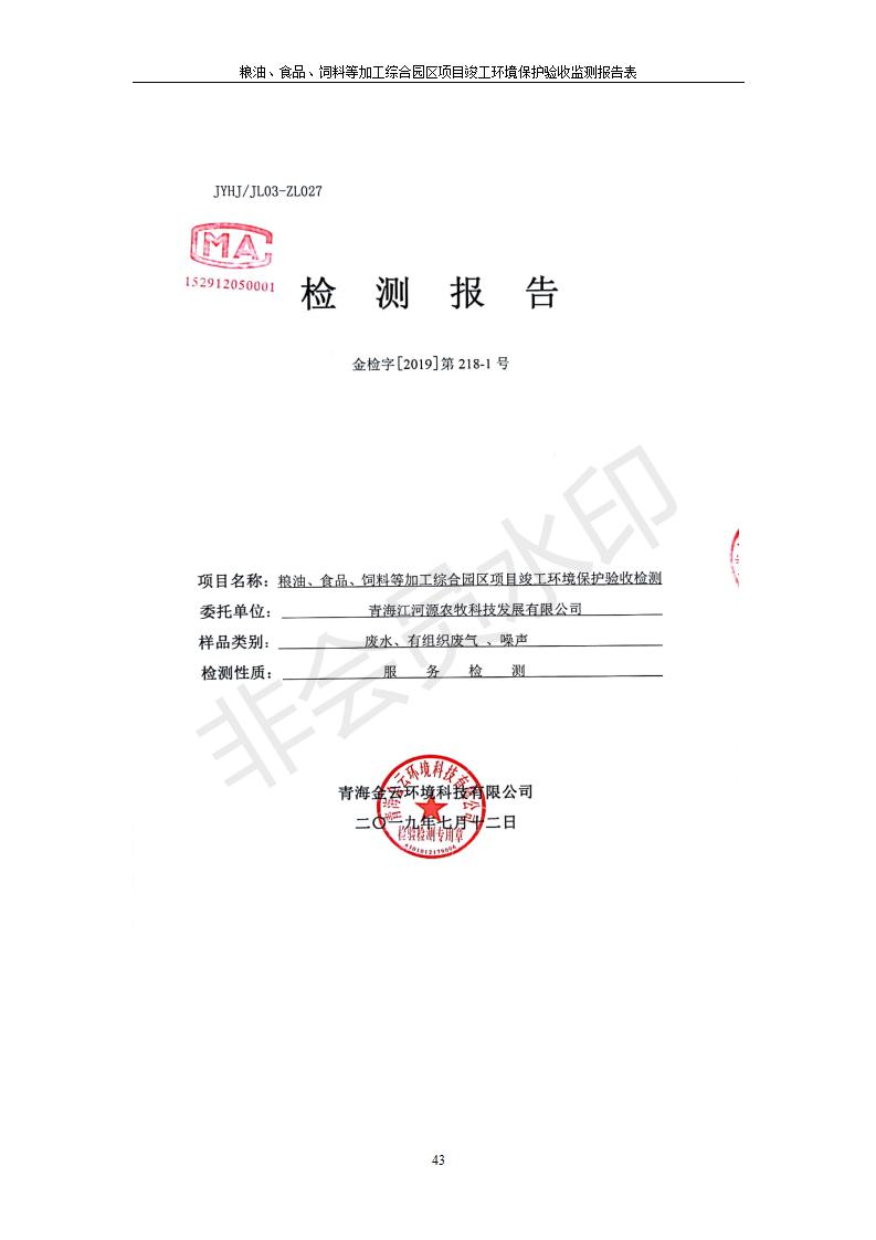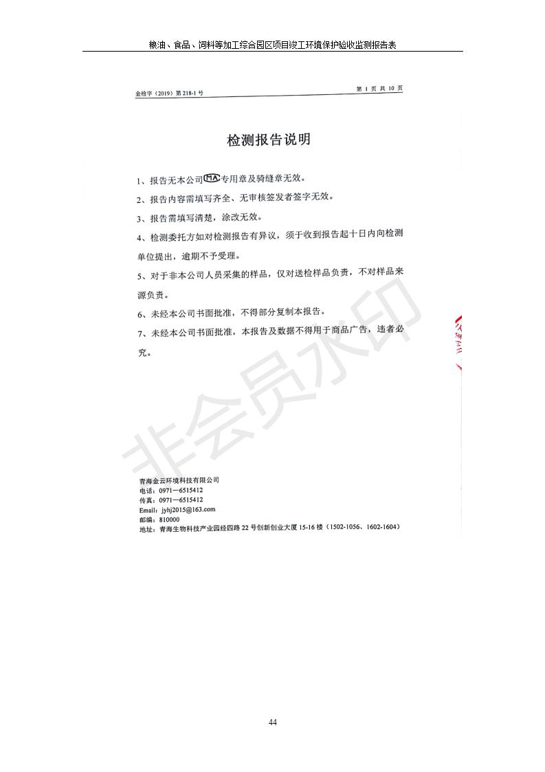 根據(jù)中華人民共和國國務(wù)院令第682號《國務(wù)院關(guān)于修改〈建設(shè)項目環(huán)境保護(hù)管理條例〉的決定》和《建設(shè)項目竣工環(huán)境保護(hù)驗收暫行辦法》(國務(wù)院令682號),糧油、食品、飼料等加工綜合園區(qū)項目竣工環(huán)境保護(hù)驗收監(jiān)測報告表(包括竣工環(huán)境保護(hù)驗收監(jiān)測報告表和驗收意見)公示如下。 一、項目名稱:糧油、食品、飼料等加工綜合園區(qū)項目 二、地點:河湟新區(qū)(海東工業(yè)園區(qū)臨空綜合經(jīng)濟(jì)園) 六、聯(lián)系電話:0971-6515411 七、公示時間:二〇一九年十月九日至二〇一九年十一月五日 公示期間,對上述公示內(nèi)容如有異議,請以書面形式反饋,個人須署真實姓名,單位須加蓋公章。