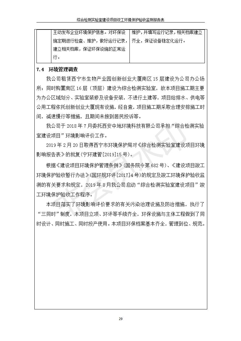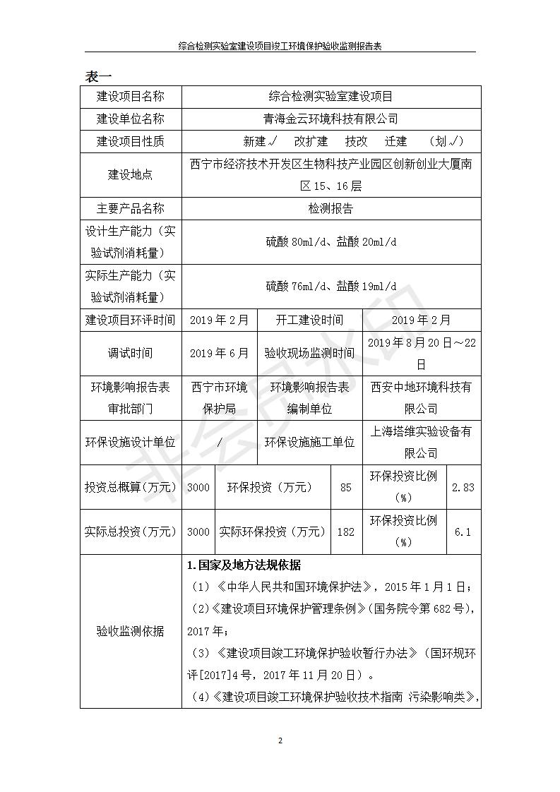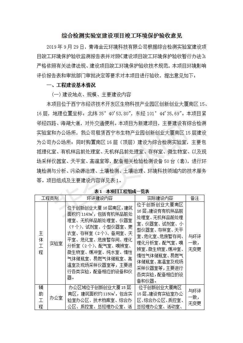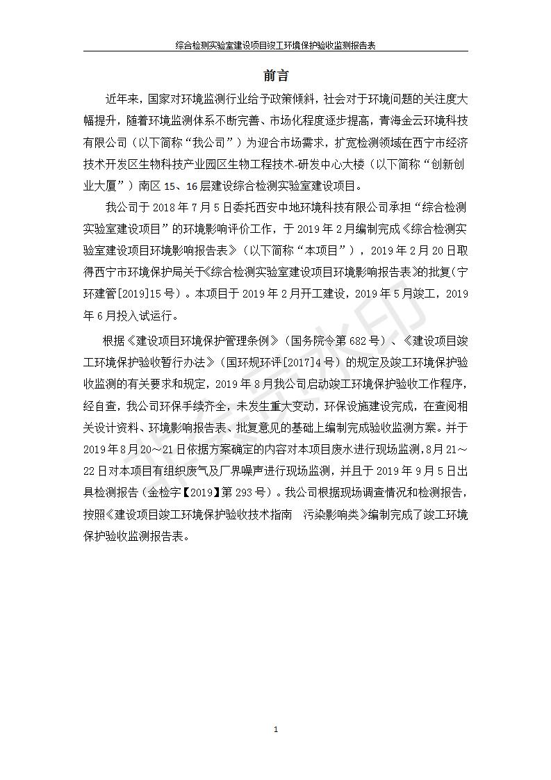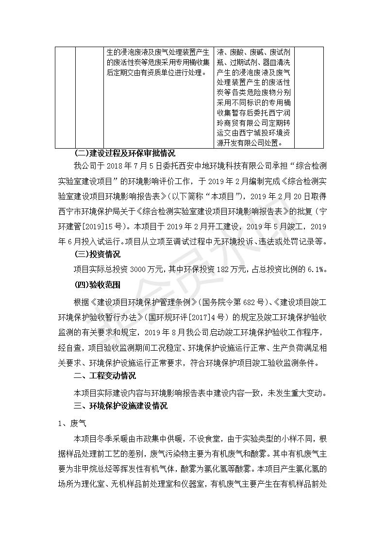 根據(jù)中華人民共和國國務(wù)院令第682號《國務(wù)院關(guān)于修改〈建設(shè)項目環(huán)境保護(hù)管理條例〉的決定》和《建設(shè)項目竣工環(huán)境保護(hù)驗收暫行辦法》(國務(wù)院令682號),綜合檢測實驗室建設(shè)項目(包括竣工環(huán)境保護(hù)驗收監(jiān)測報告表和驗收意見)公示如下。 一、項目名稱:綜合檢測實驗室建設(shè)項目 二、地點:西寧市經(jīng)濟技術(shù)開發(fā)區(qū)生物科技產(chǎn)業(yè)園區(qū)創(chuàng)新創(chuàng)業(yè)大廈南區(qū)15、16層 六、聯(lián)系電話:0971-6515411 七、公示時間:二〇一九年十一月十九日至二〇一九年十二月十六日 公示期間,對上述公示內(nèi)容如有異議,請以書面形式反饋,個人須署真實姓名,單位須加蓋公章。