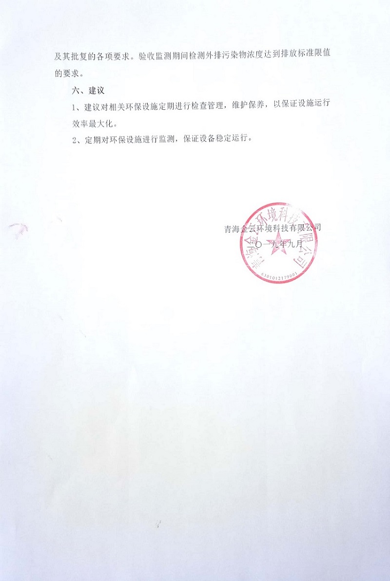 | 上一篇:年產(chǎn)40萬條集裝袋及500萬條編織袋生產(chǎn)線項目竣工環(huán)境保護(hù)驗收監(jiān)測報告表公示 | 下一篇:青海義盛選煤有限公司熱水選煤項目(階段性)竣工環(huán)境保護(hù)驗收 |