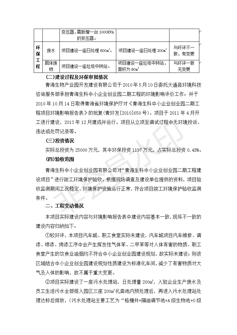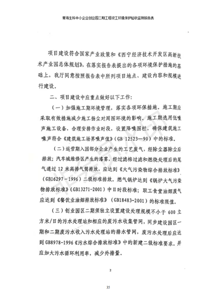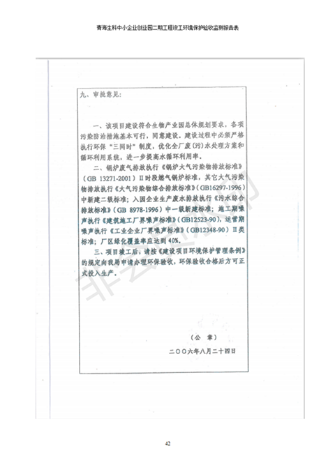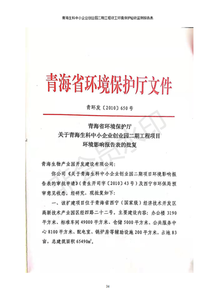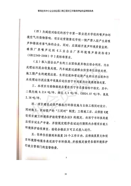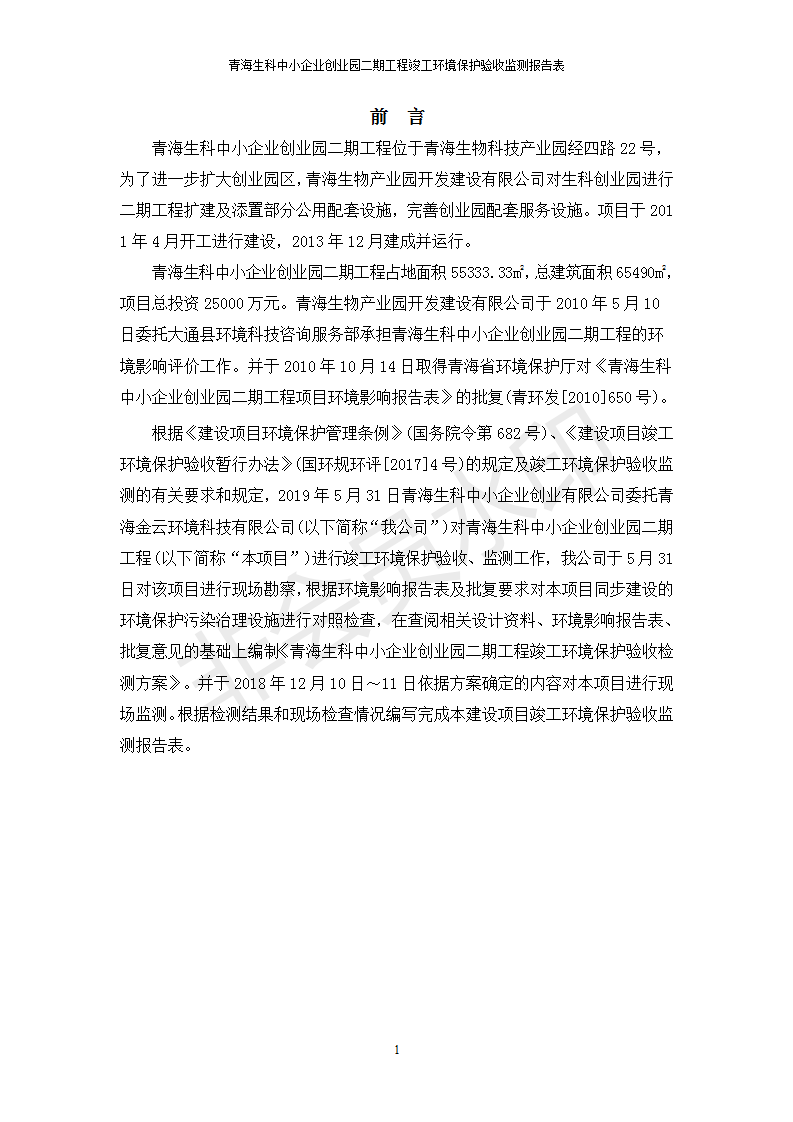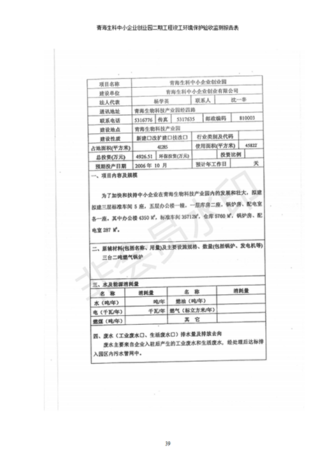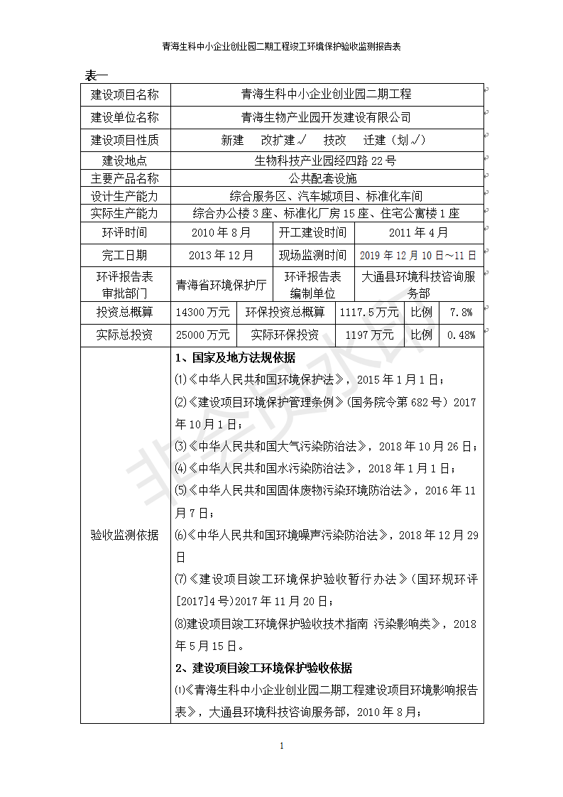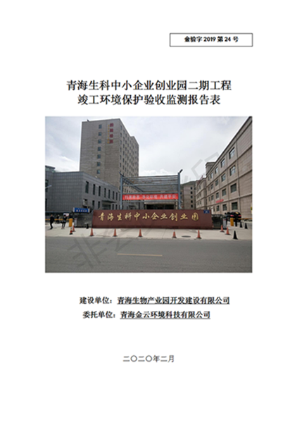 據(jù)中華人民共和國國務院令第682號《國務院關于修改〈建設項目環(huán)境保護管理條例〉的決定》和《建設項目竣工環(huán)境保護驗收暫行辦法》(國務院令682號),青海生科中小企業(yè)創(chuàng)業(yè)園二期工程建設項目(包括竣工環(huán)境保護驗收監(jiān)測報告表和驗收意見)公示如下。 一、項目名稱:青海生科中小企業(yè)創(chuàng)業(yè)園二期工程建設項目 二、地點:西寧市生物園區(qū)經(jīng)四路26號 五、聯(lián)系人:張憲周 六、聯(lián)系電話:13997290897 七、公示時間:二〇二〇年二月三日至二〇二〇年二月二十八日 公示期間,對上述公示內容如有異議,請以書面形式反饋,個人須署真實姓名,單位須加蓋公章。