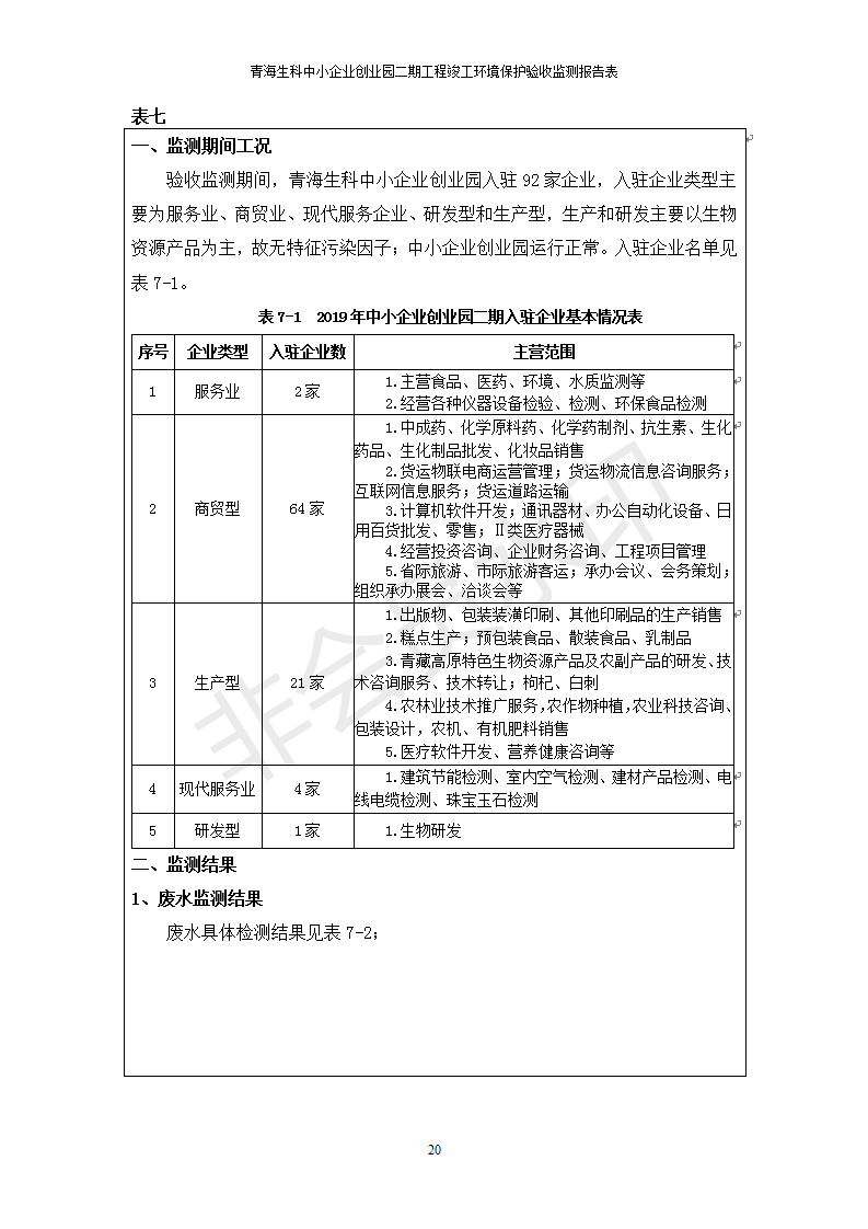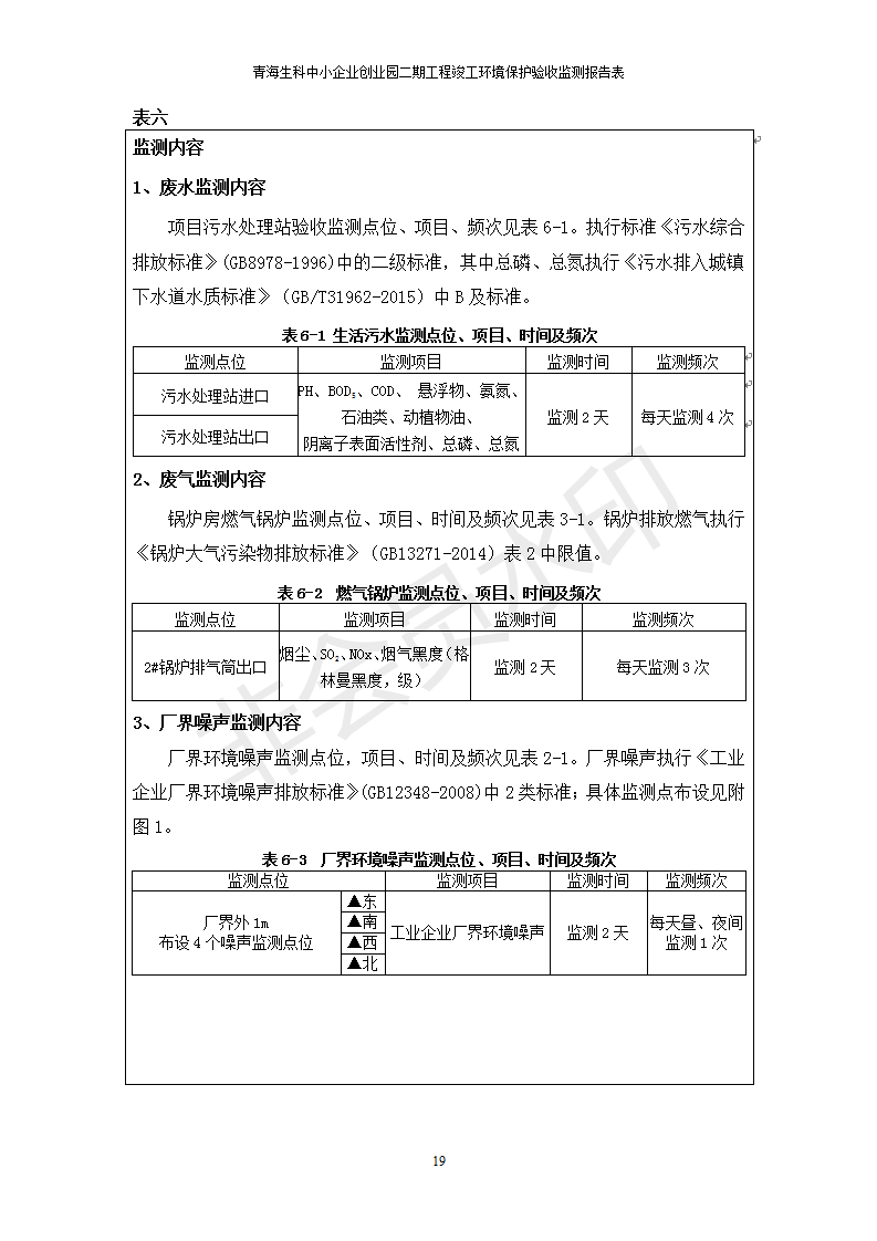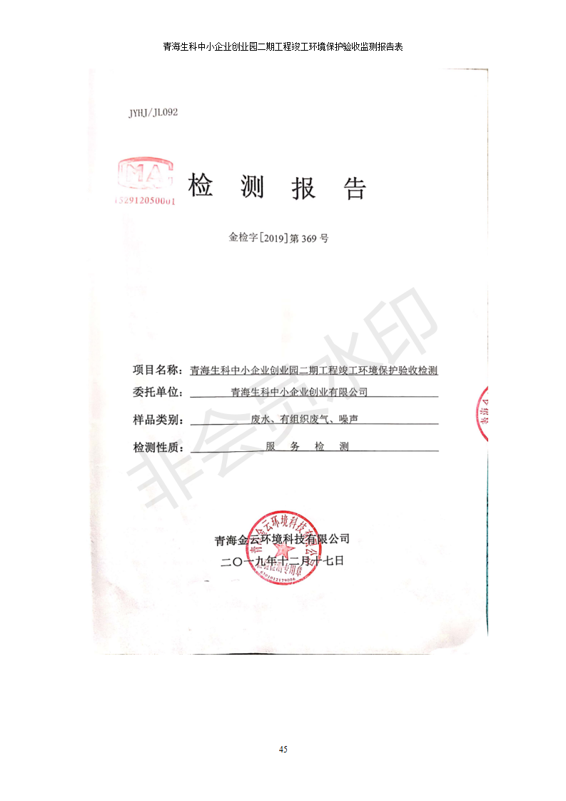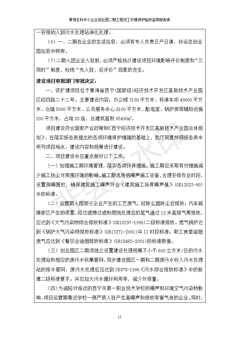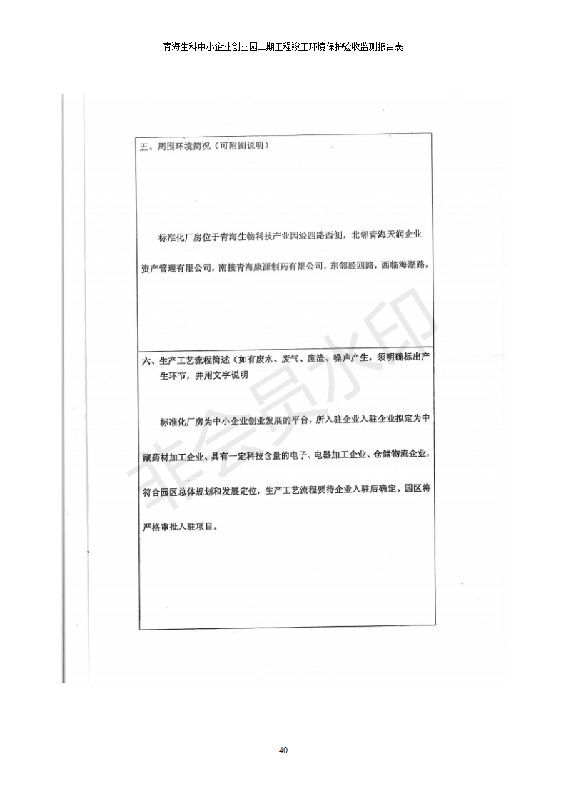 據(jù)中華人民共和國國務院令第682號《國務院關于修改〈建設項目環(huán)境保護管理條例〉的決定》和《建設項目竣工環(huán)境保護驗收暫行辦法》(國務院令682號),青海生科中小企業(yè)創(chuàng)業(yè)園二期工程建設項目(包括竣工環(huán)境保護驗收監(jiān)測報告表和驗收意見)公示如下。 一、項目名稱:青海生科中小企業(yè)創(chuàng)業(yè)園二期工程建設項目 二、地點:西寧市生物園區(qū)經(jīng)四路26號 五、聯(lián)系人:張憲周 六、聯(lián)系電話:13997290897 七、公示時間:二〇二〇年二月三日至二〇二〇年二月二十八日 公示期間,對上述公示內容如有異議,請以書面形式反饋,個人須署真實姓名,單位須加蓋公章。