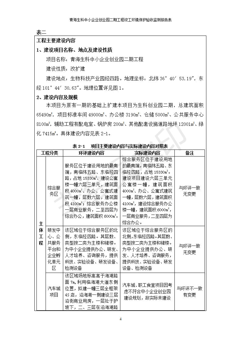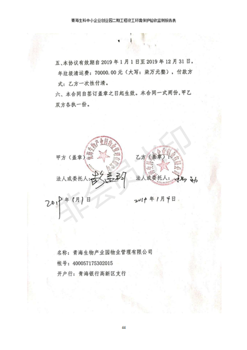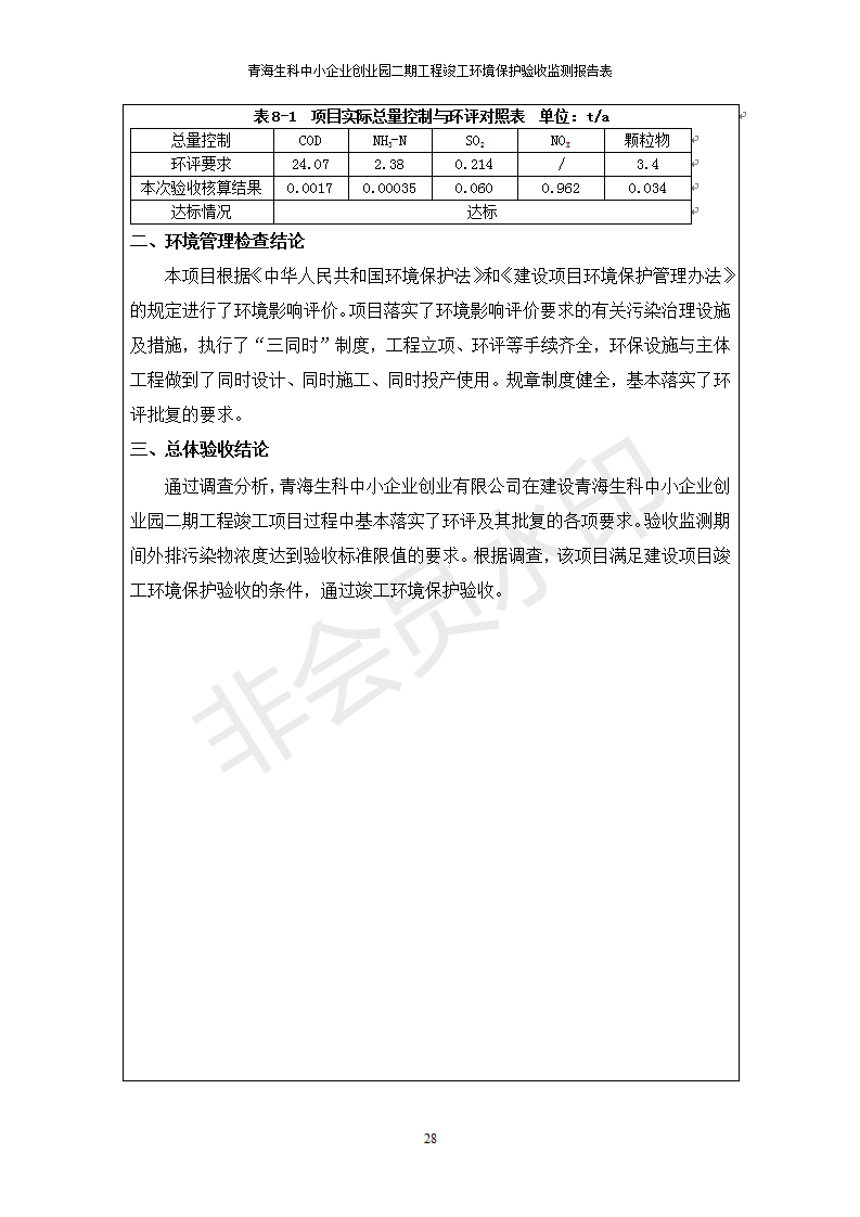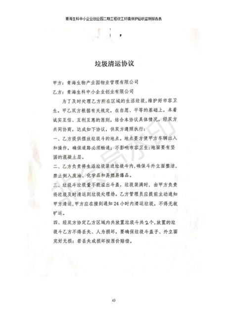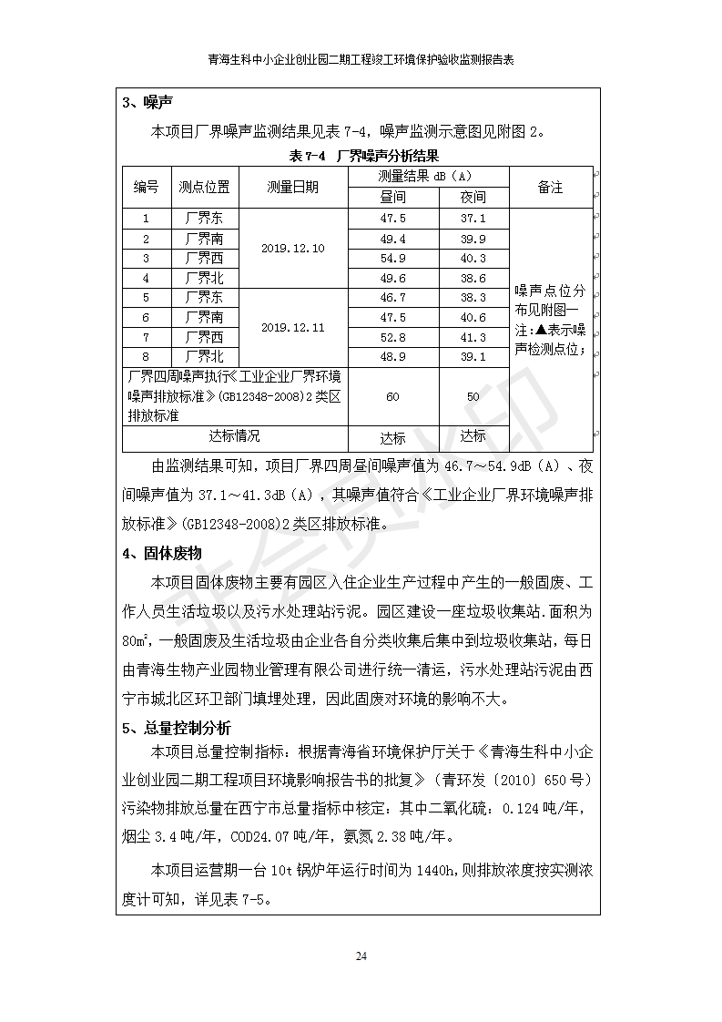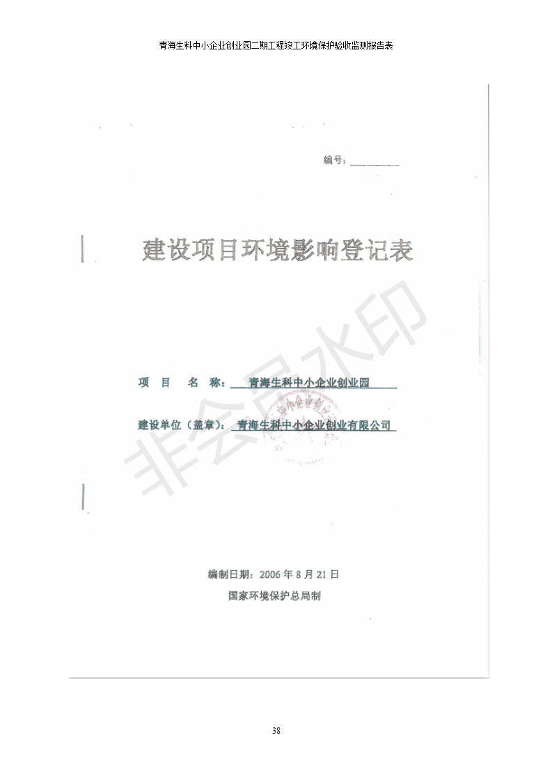 據(jù)中華人民共和國國務院令第682號《國務院關于修改〈建設項目環(huán)境保護管理條例〉的決定》和《建設項目竣工環(huán)境保護驗收暫行辦法》(國務院令682號),青海生科中小企業(yè)創(chuàng)業(yè)園二期工程建設項目(包括竣工環(huán)境保護驗收監(jiān)測報告表和驗收意見)公示如下。 一、項目名稱:青海生科中小企業(yè)創(chuàng)業(yè)園二期工程建設項目 二、地點:西寧市生物園區(qū)經(jīng)四路26號 五、聯(lián)系人:張憲周 六、聯(lián)系電話:13997290897 七、公示時間:二〇二〇年二月三日至二〇二〇年二月二十八日 公示期間,對上述公示內容如有異議,請以書面形式反饋,個人須署真實姓名,單位須加蓋公章。