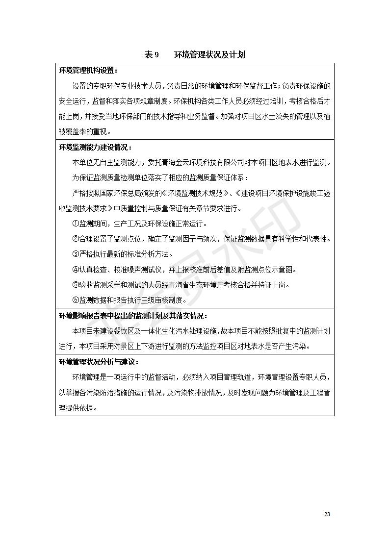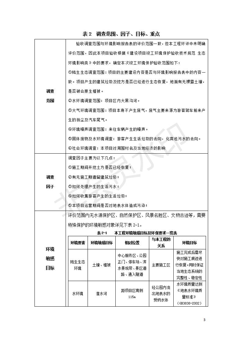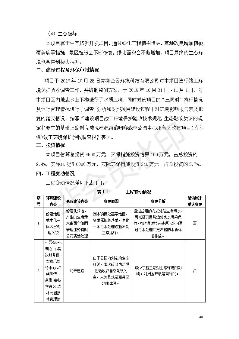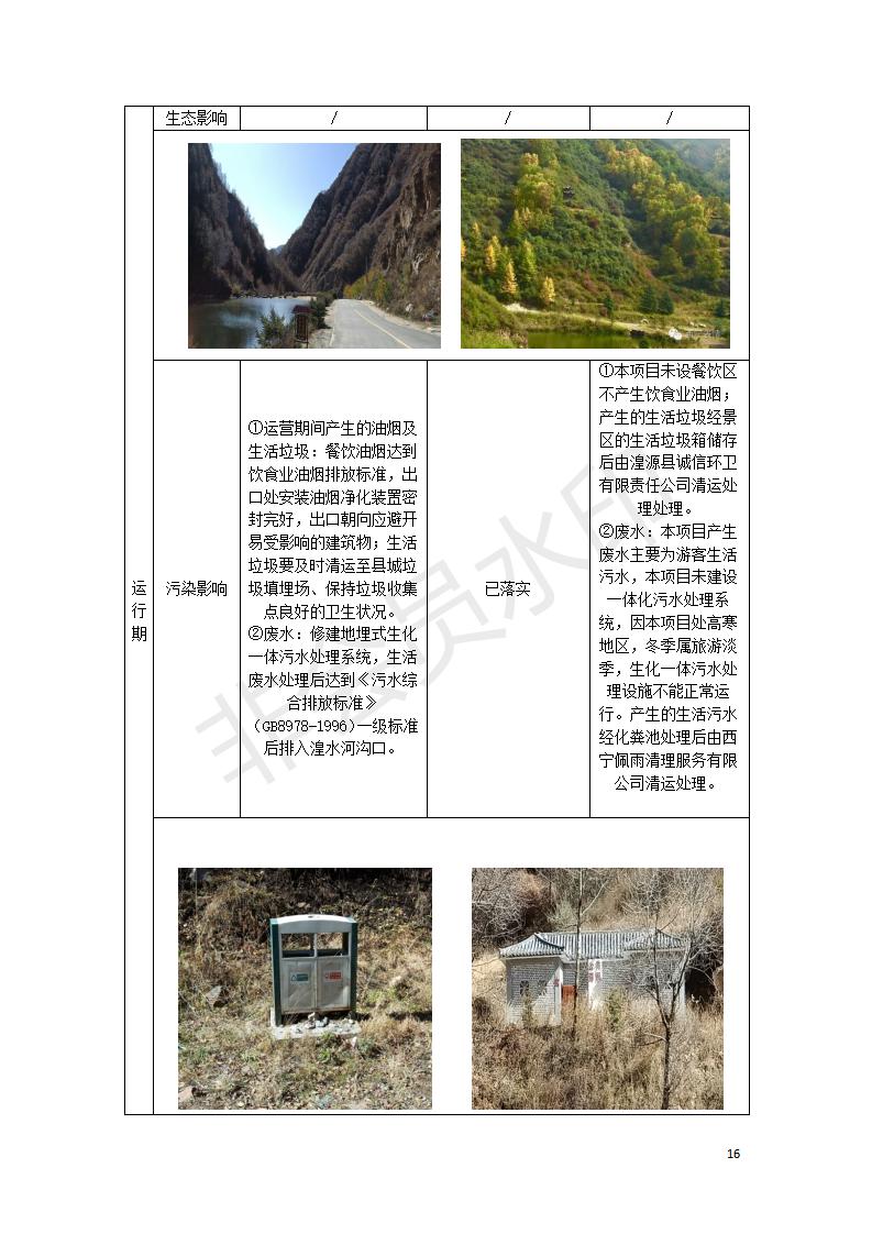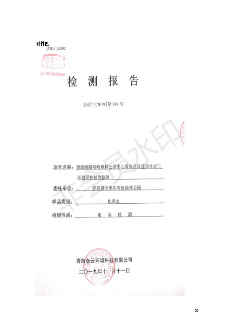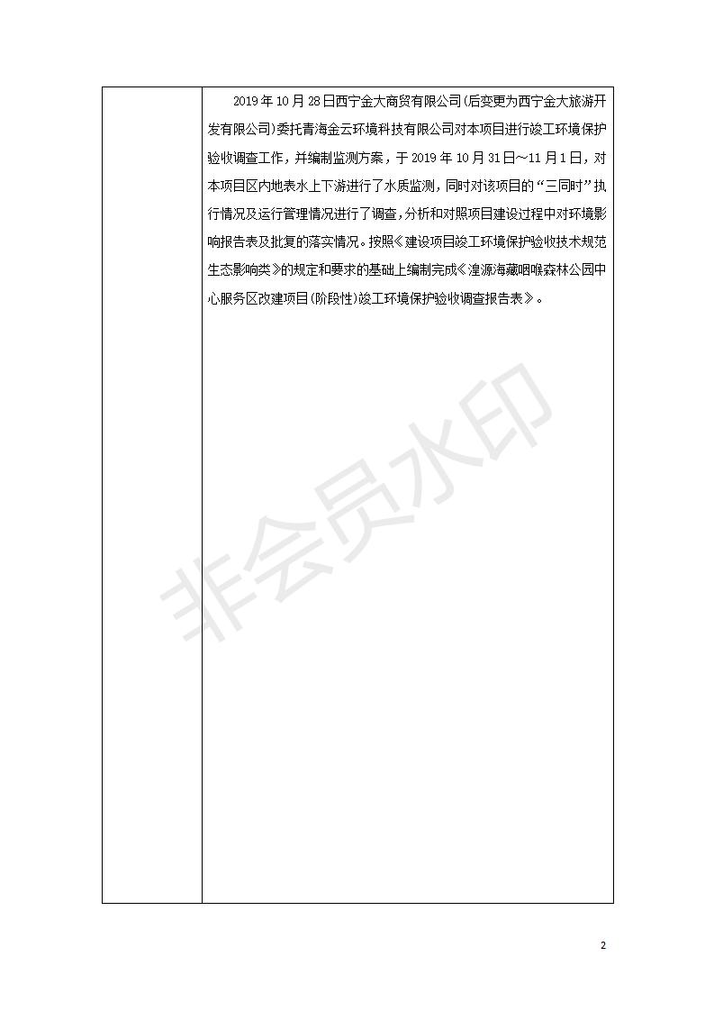 根據(jù)中華人民共和國國務院令第682號《國務院關(guān)于修改〈建設(shè)項目環(huán)境保護管理條例〉的決定》和《建設(shè)項目竣工環(huán)境保護驗收暫行辦法》(國務院令682號),湟源海藏咽喉森林公園中心服務區(qū)改建項目(階段性),(包括竣工環(huán)境保護驗收調(diào)查表和驗收意見)公示如下。 一、項目名稱:湟源海藏咽喉森林公園中心服務區(qū)改建項目(階段性) 竣工環(huán)境保護驗收調(diào)查表 二、地點:青海省湟源縣東峽鄉(xiāng)大黑溝 三、建設(shè)單位:西寧金大旅游開發(fā)有限公司 四、建設(shè)內(nèi)容:本次階段性驗收以自然景觀為主,建設(shè)內(nèi)容為濱水景觀帶、觀景臺、景區(qū)道路及基礎(chǔ)設(shè)施。項目范圍從景區(qū)大門至中心位置,全長4800m。 五、聯(lián)系人:張工 六、聯(lián)系電 話:0971-6515411 七、公示時間:二〇二〇年四月二十九日至二〇二〇年五月二十八日 公示期間,對上述公示內(nèi)容如有異議,請以書面形式反饋,個人須署真實姓名,單位須加蓋公章。