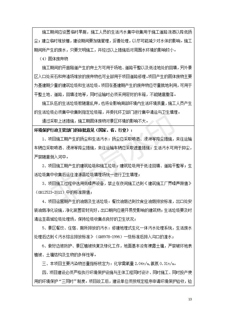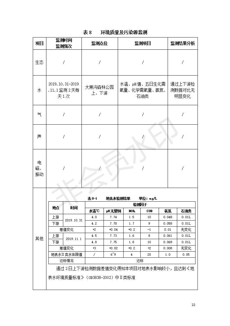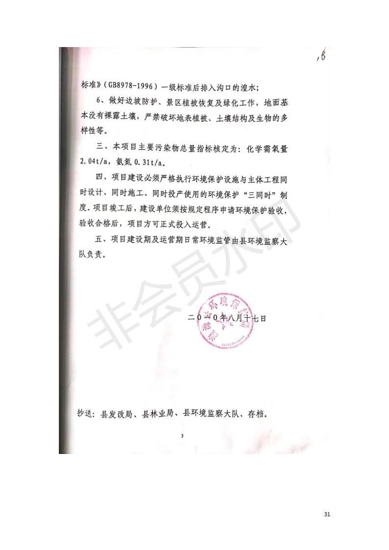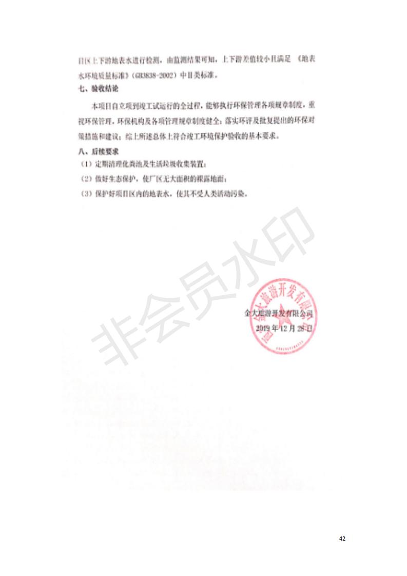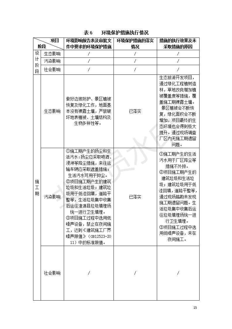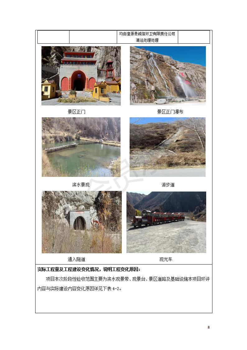 根據(jù)中華人民共和國國務院令第682號《國務院關(guān)于修改〈建設(shè)項目環(huán)境保護管理條例〉的決定》和《建設(shè)項目竣工環(huán)境保護驗收暫行辦法》(國務院令682號),湟源海藏咽喉森林公園中心服務區(qū)改建項目(階段性),(包括竣工環(huán)境保護驗收調(diào)查表和驗收意見)公示如下。 一、項目名稱:湟源海藏咽喉森林公園中心服務區(qū)改建項目(階段性) 竣工環(huán)境保護驗收調(diào)查表 二、地點:青海省湟源縣東峽鄉(xiāng)大黑溝 三、建設(shè)單位:西寧金大旅游開發(fā)有限公司 四、建設(shè)內(nèi)容:本次階段性驗收以自然景觀為主,建設(shè)內(nèi)容為濱水景觀帶、觀景臺、景區(qū)道路及基礎(chǔ)設(shè)施。項目范圍從景區(qū)大門至中心位置,全長4800m。 五、聯(lián)系人:張工 六、聯(lián)系電 話:0971-6515411 七、公示時間:二〇二〇年四月二十九日至二〇二〇年五月二十八日 公示期間,對上述公示內(nèi)容如有異議,請以書面形式反饋,個人須署真實姓名,單位須加蓋公章。